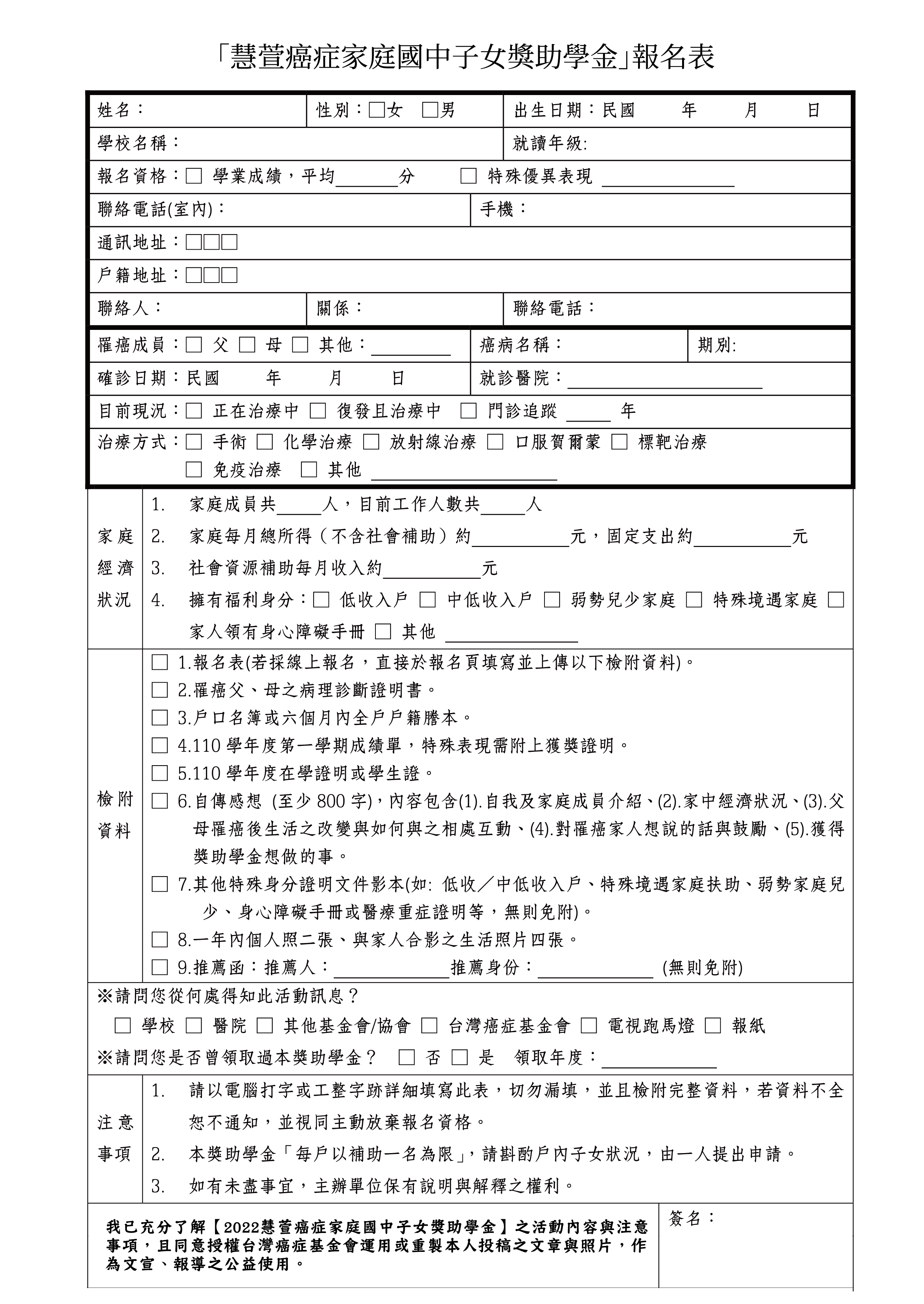 | 一、 | 依據財團法人臺灣癌症基金會111年3月28日臺癌字第1110328003號函辦理。 |