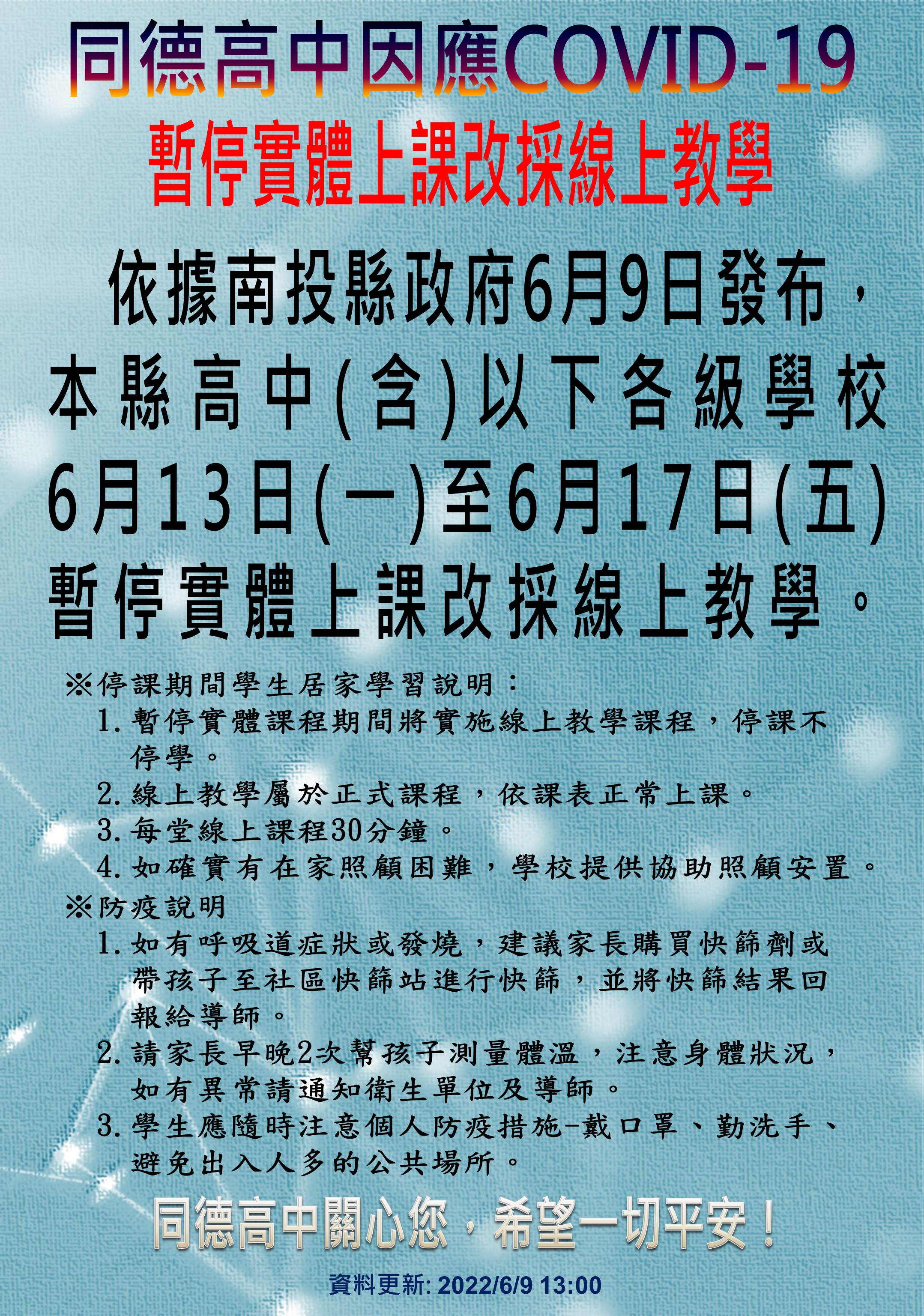 6/13~6/17因COVID-19疫情,暫停實體課程改採遠距線上教學