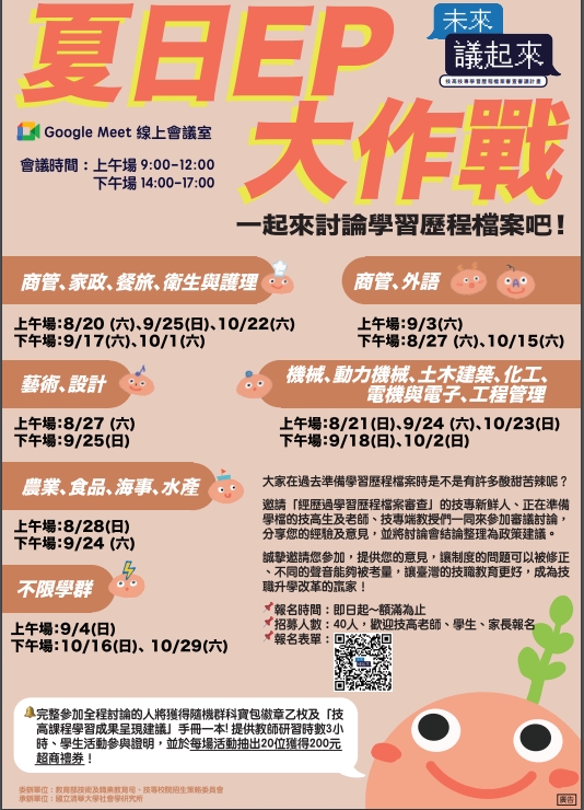 教育部辦理111年度8-10月技高.技專學習歷程審查審議計畫