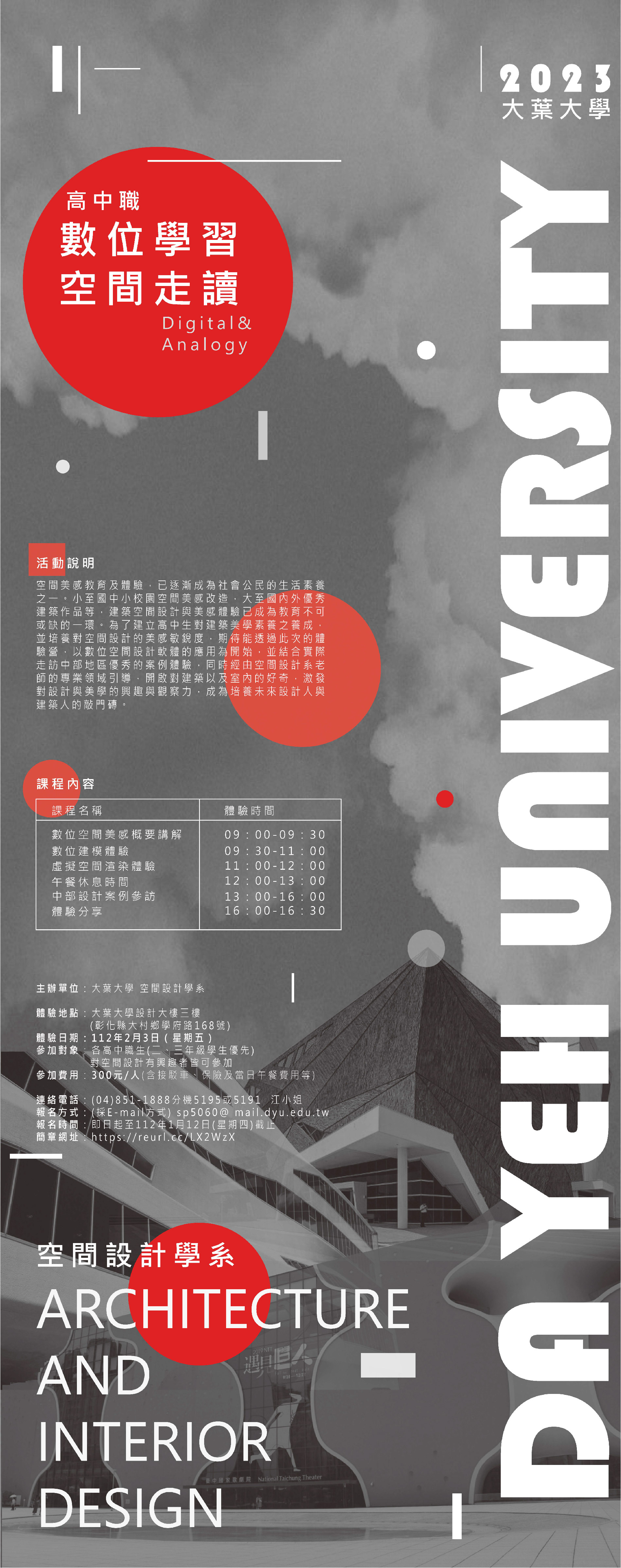 一、空間設計學系僅訂於112年2月3日(星期五)舉辦