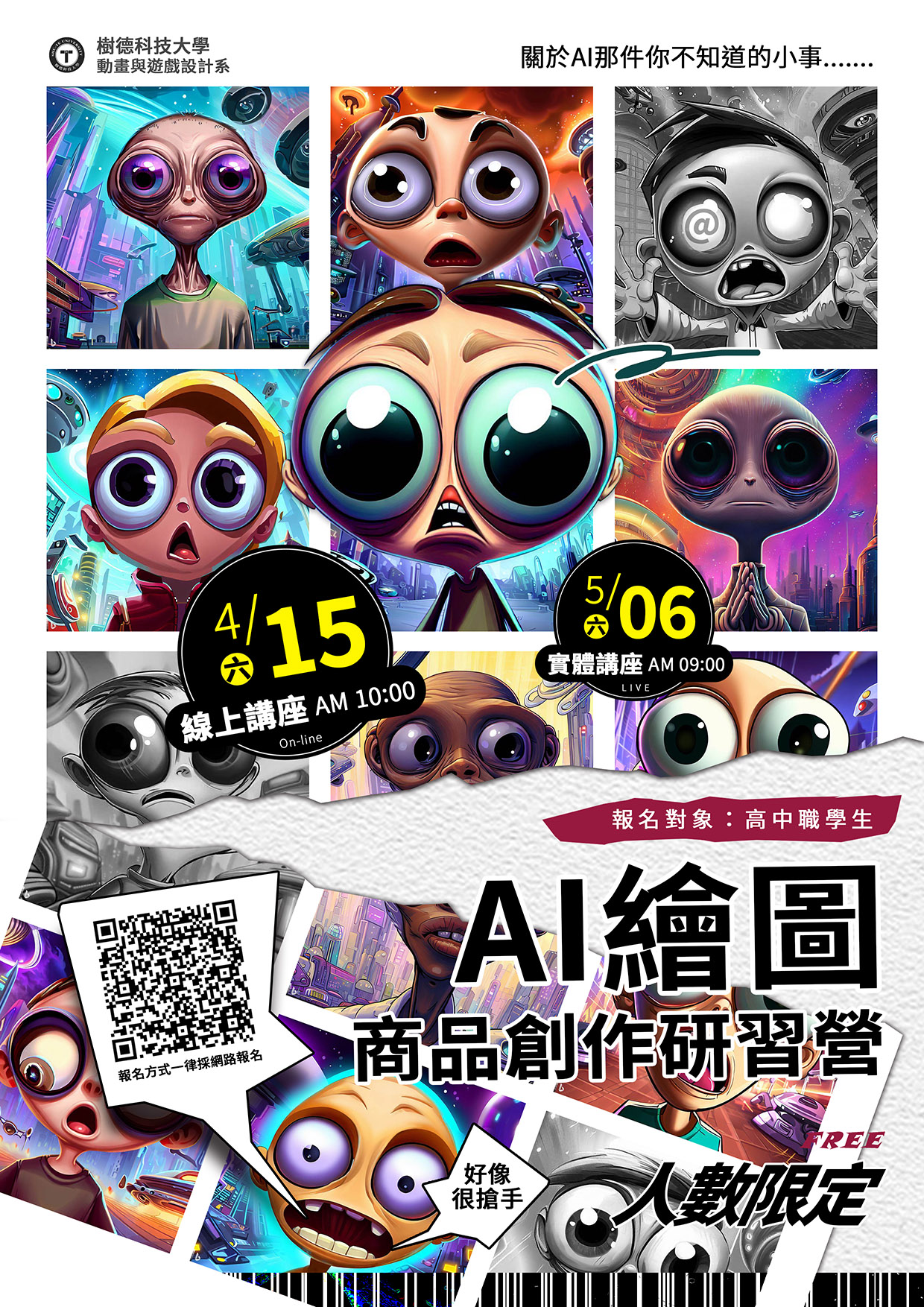 一、歡迎高中職對於AI繪圖與商品創作有興趣的同學報名參