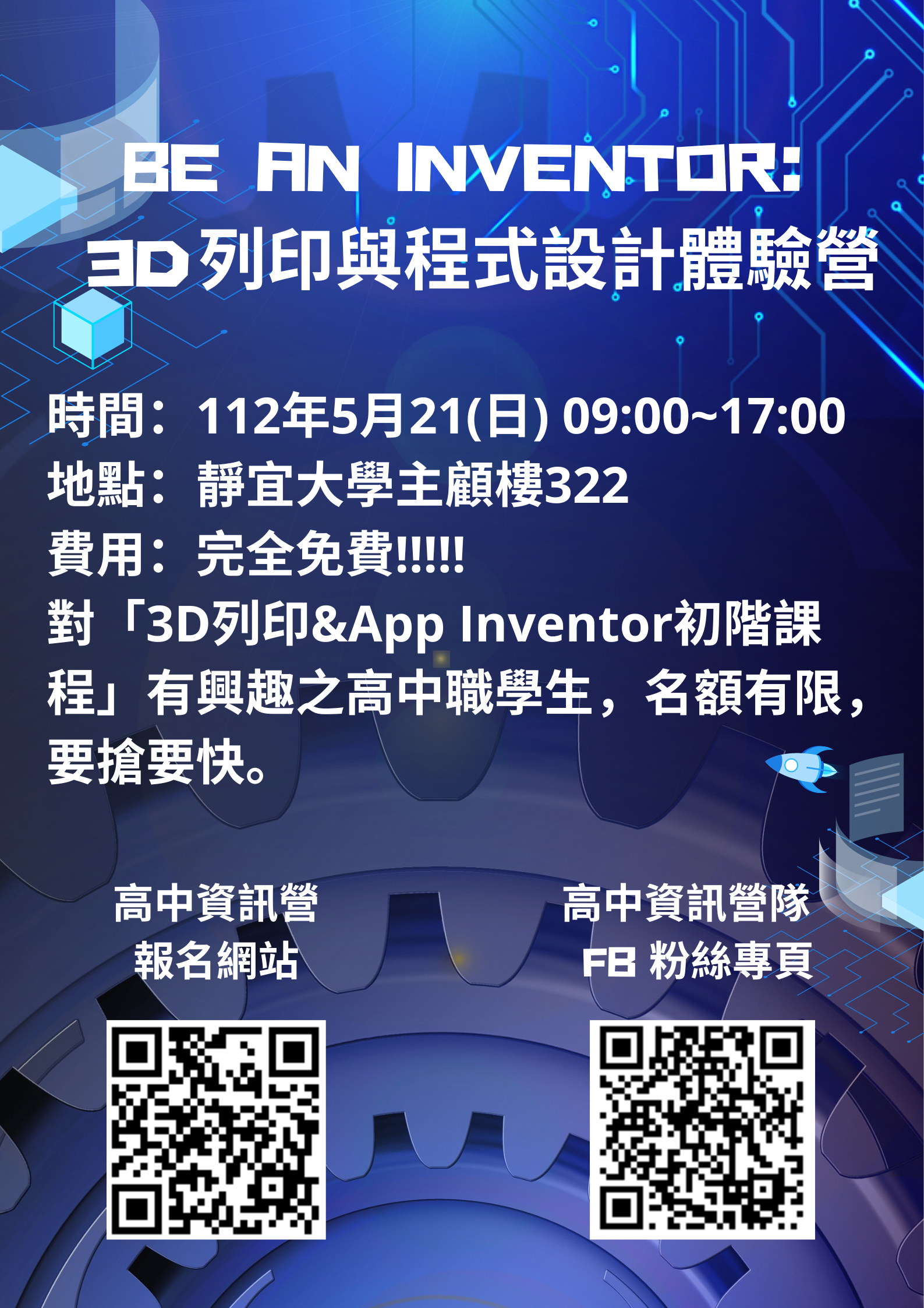二、對象:對「3D列印及App Inventor程式設計」有興趣之高中職學生,名額60人。