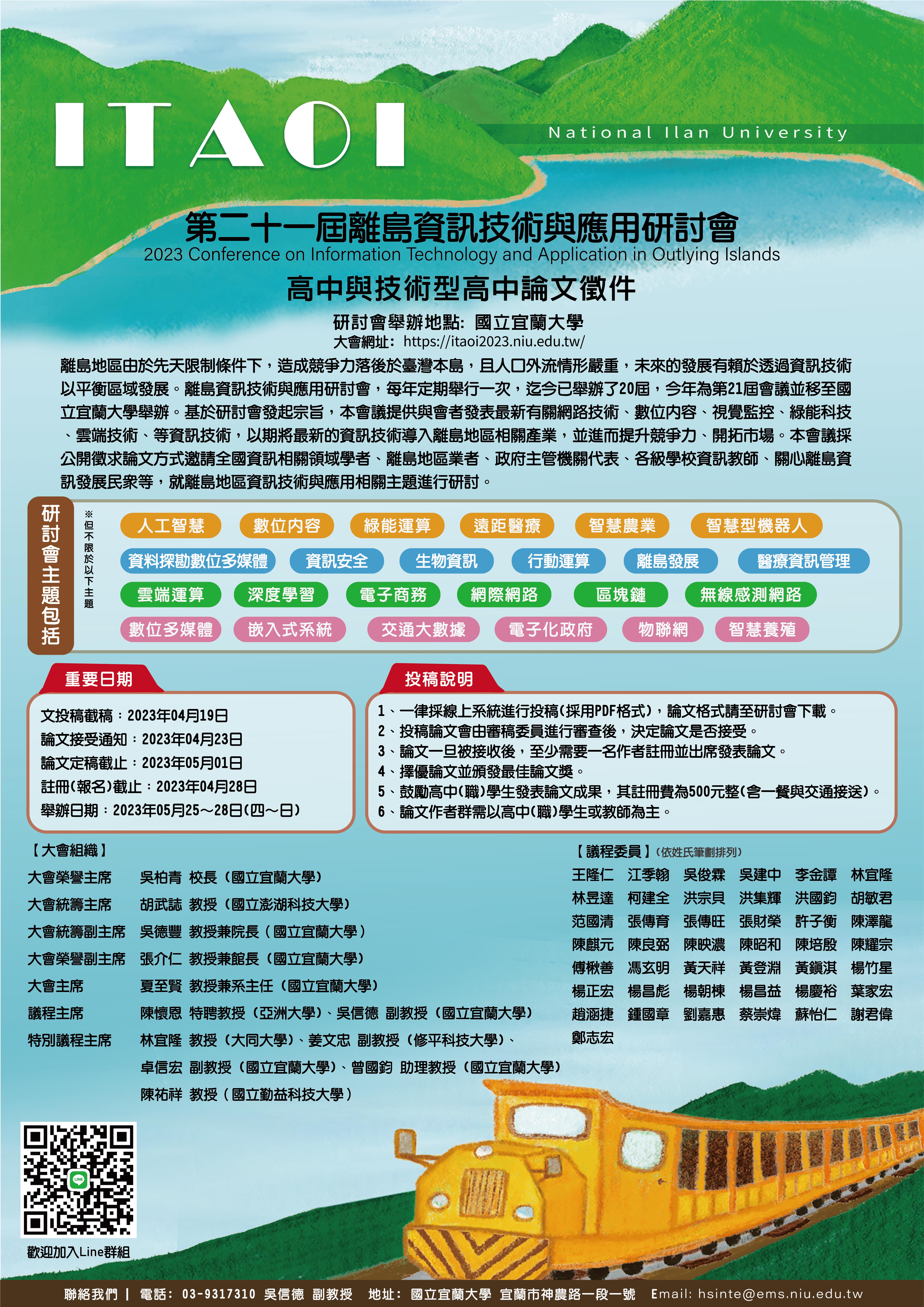 國立宜蘭大學資訊工程學系辦理「第二十一屆離島資訊技術與應用研討會(ITAOI2023)」