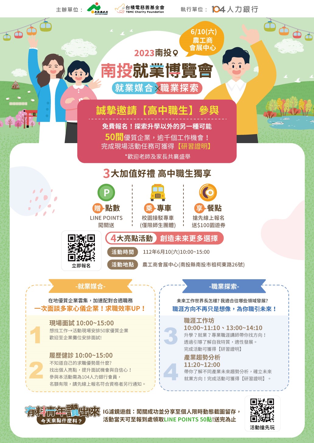 台積電慈善基金會與南投縣政府舉辦「高中職人才就業x職業探索博覽會活動」