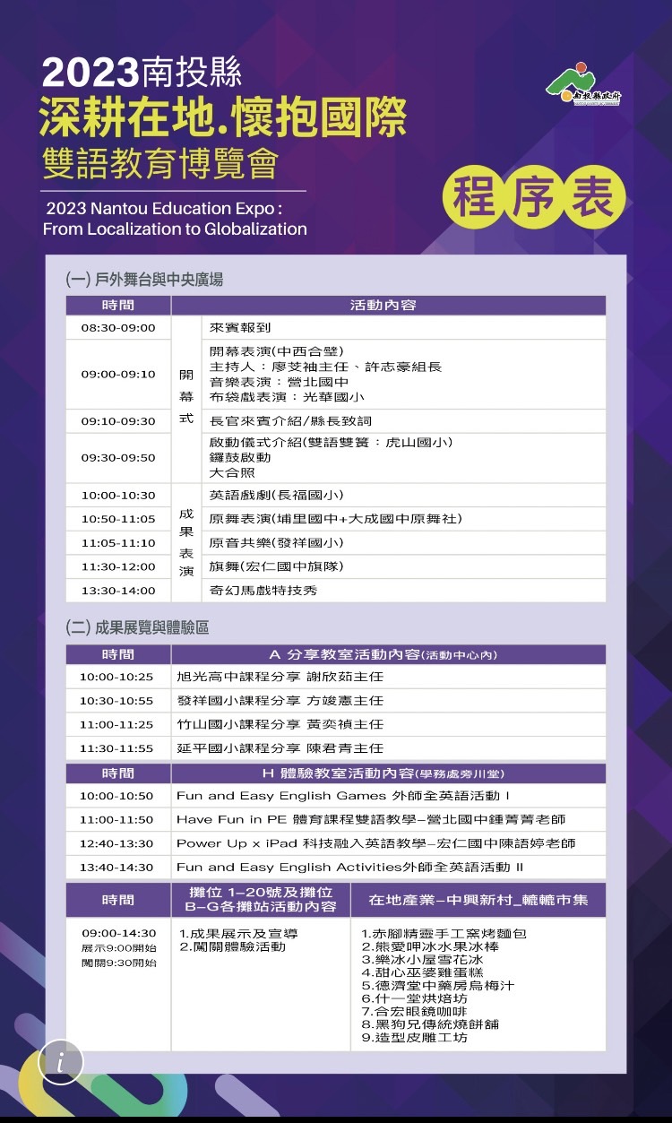 辦理「2023南投縣『深耕在地、懷抱國際』雙語教育博覽會」