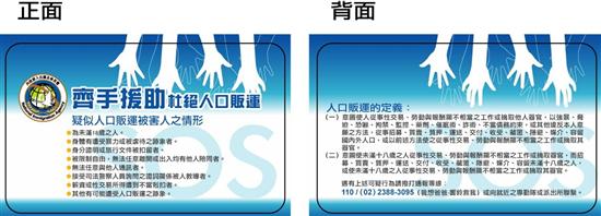 二、為持續宣導防制人口販運議題,110年內政部移民署製作