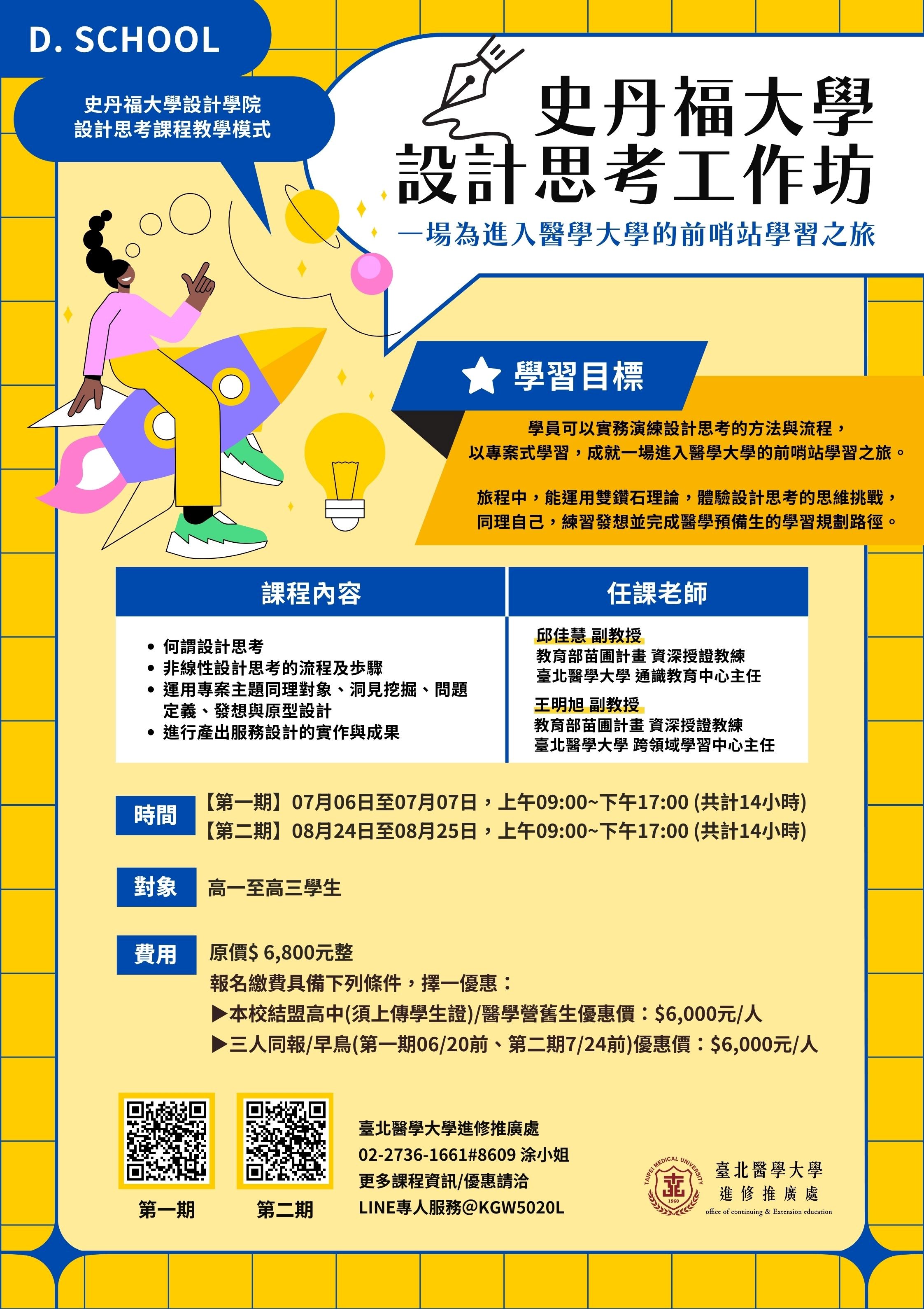 臺北醫學大學暑期辦理「史丹福大學設計思考工作坊」