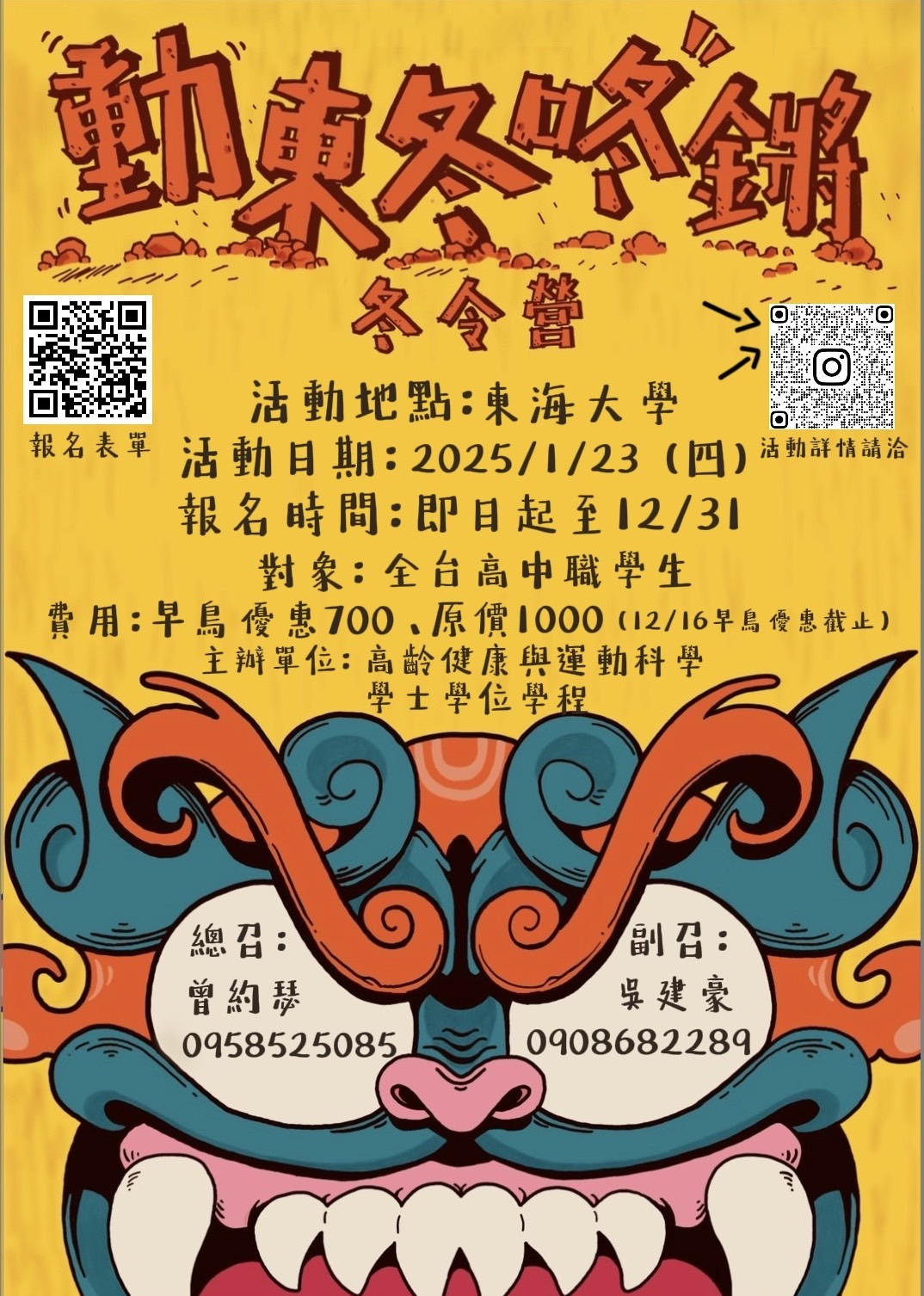 學餐旅系冬令營」、健運學程「動東冬咚鏘」。
