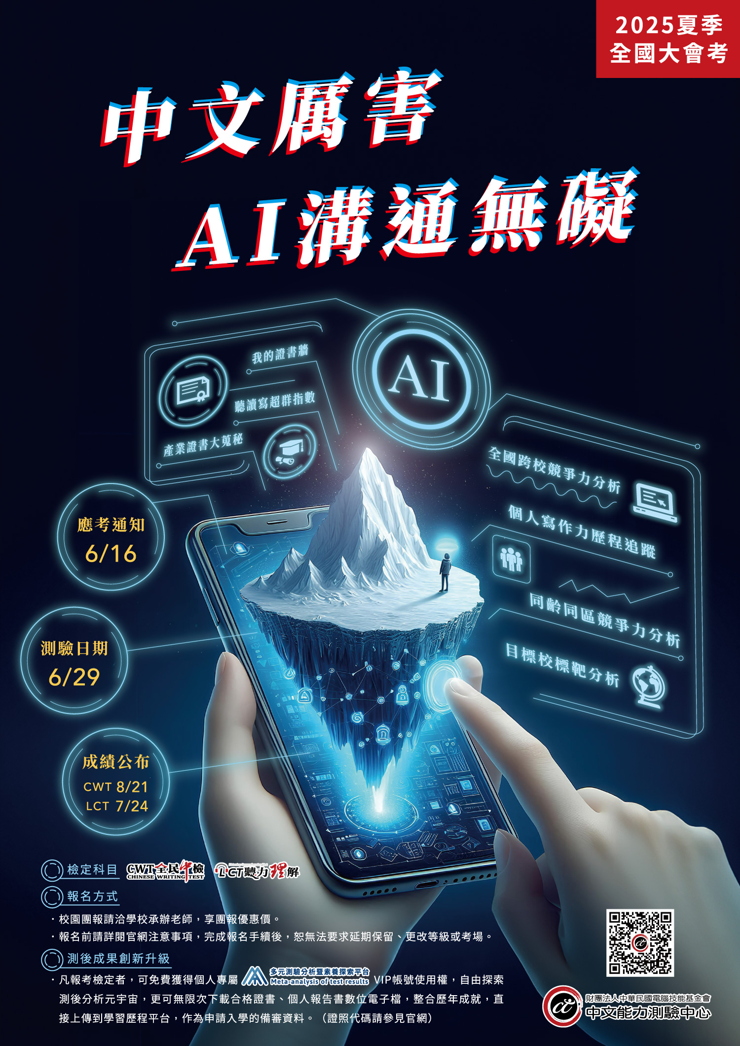 「2025中文能力測驗中心夏季全國大會考」將於2025年6月29日舉辦