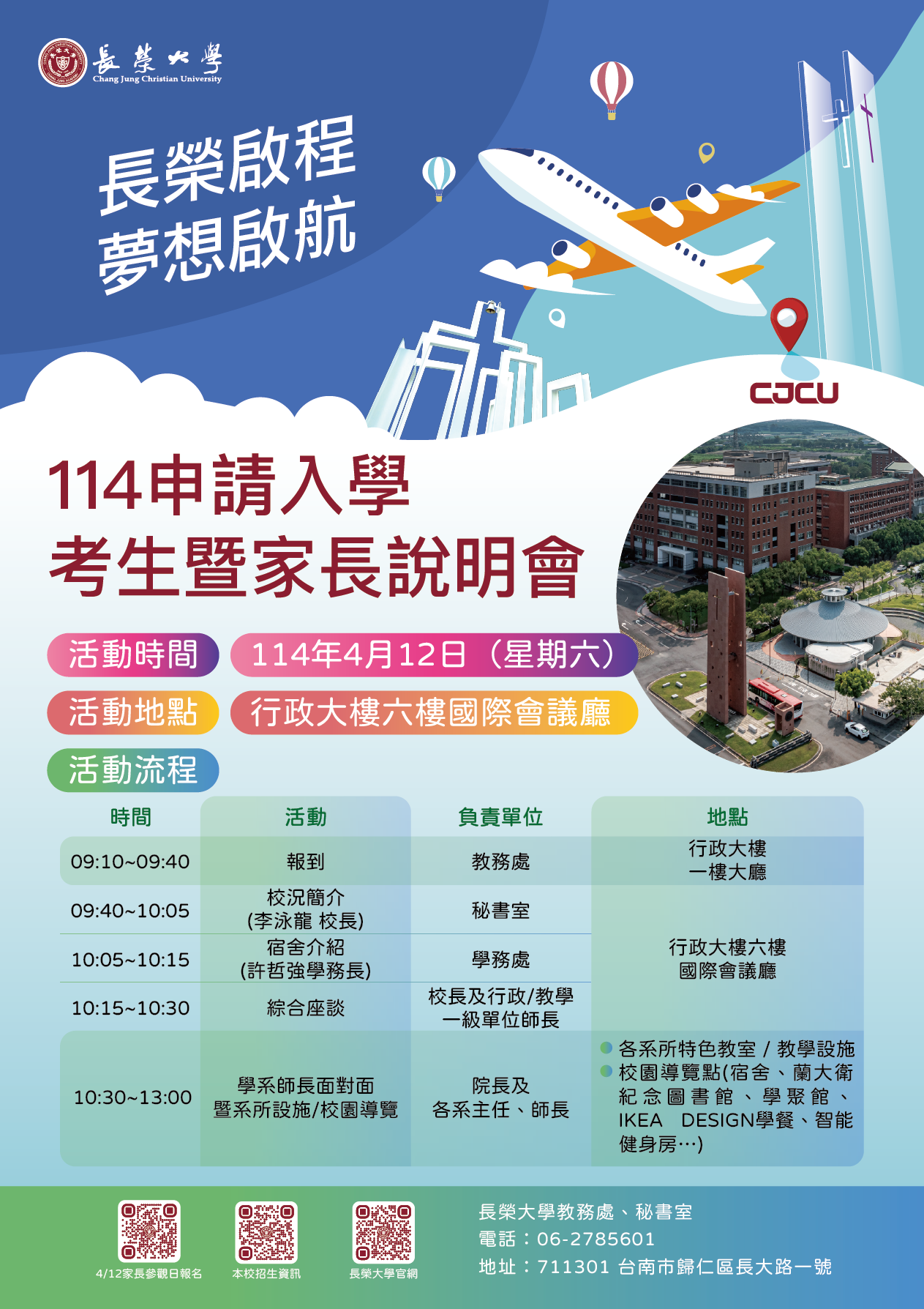 長榮大學辦理「114申請入學考生暨家長說明會」