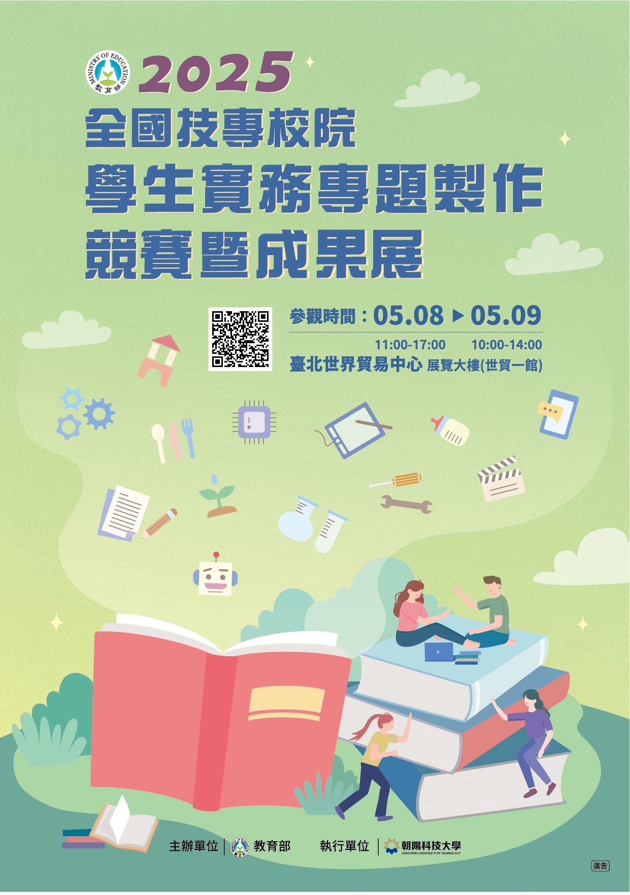 朝陽科技大學「2025年全國技專校院學生實務專題製作競賽暨成果展」訂於114年5月8、9日(星期四、五)假台北世界貿易中心 展覽大樓(世貿一館)舉辦