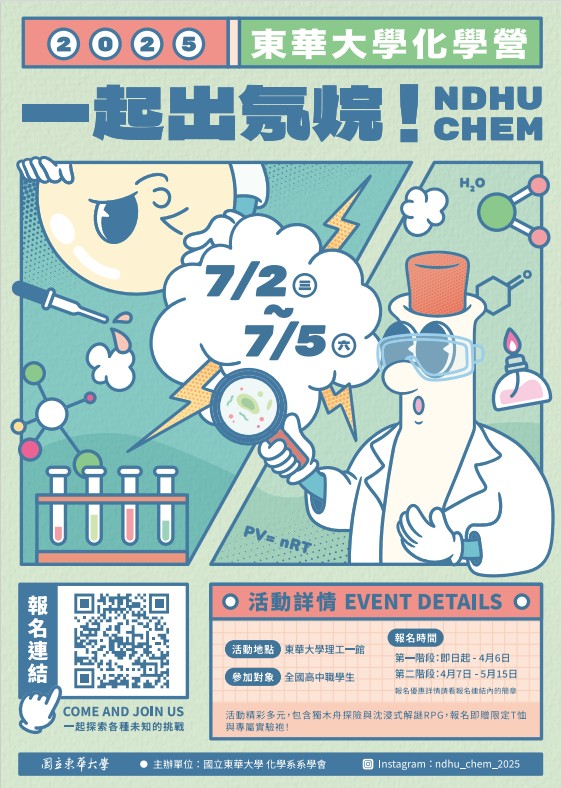 國立東華大學化學系於暑假7月2日-7月5日辦理化學營隊活動