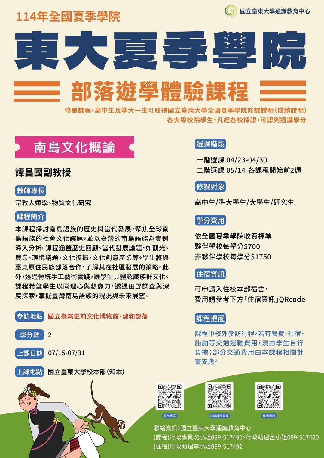 一、旨揭活動為國立臺東大學夏季學院開辦之「部落遊學體驗課程」,以協助推動全民原教,歡迎高級中等學校原住民