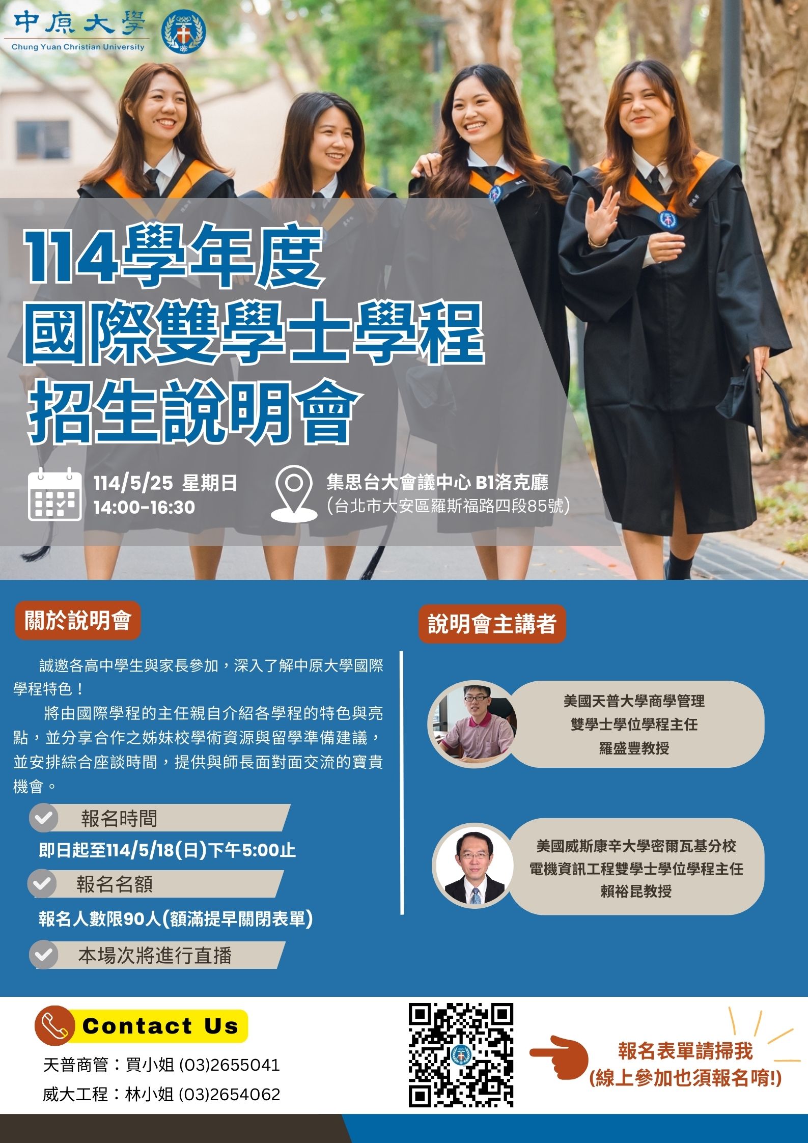 (五)詳細報名資訊請見「中原威大工程雙學士學程」網頁:https://eece.cycu.edu.tw/。