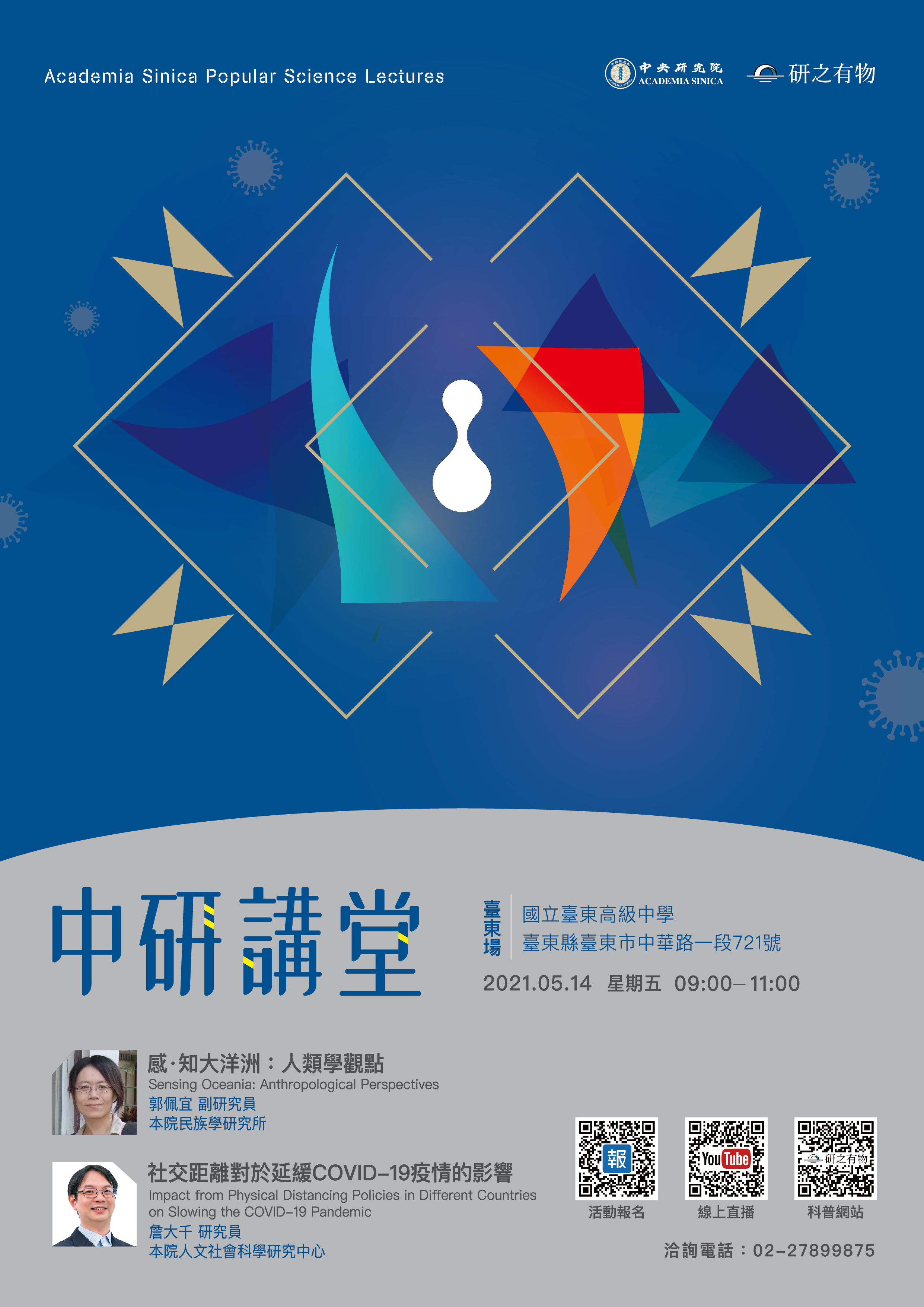 中央研究院110年「中研講堂」臺東場科普演講訂5月14日(星期五)上午,於國立臺東高級中學禮堂舉辦