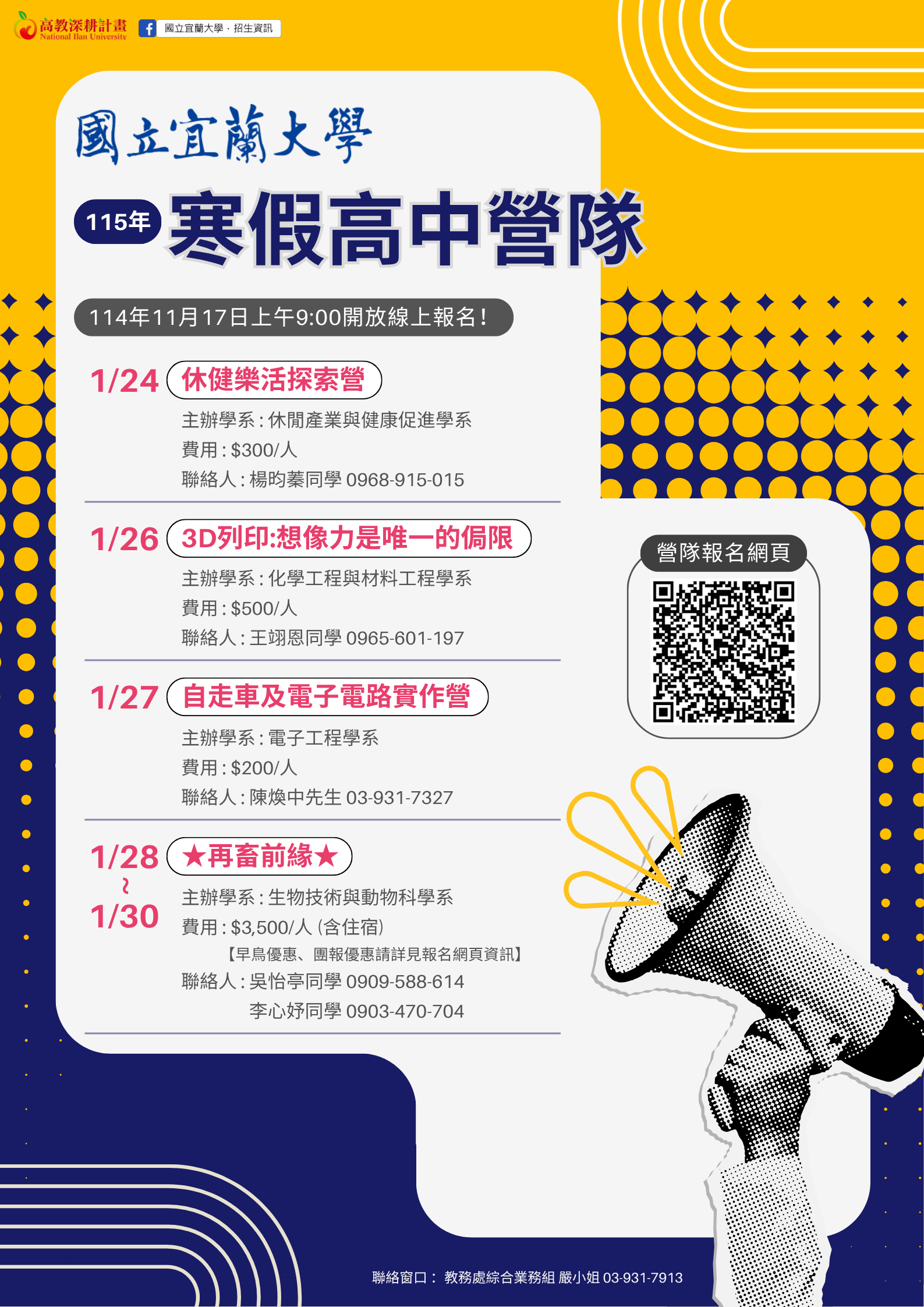 國立宜蘭大學寒假期間辦理高中主題營隊活動