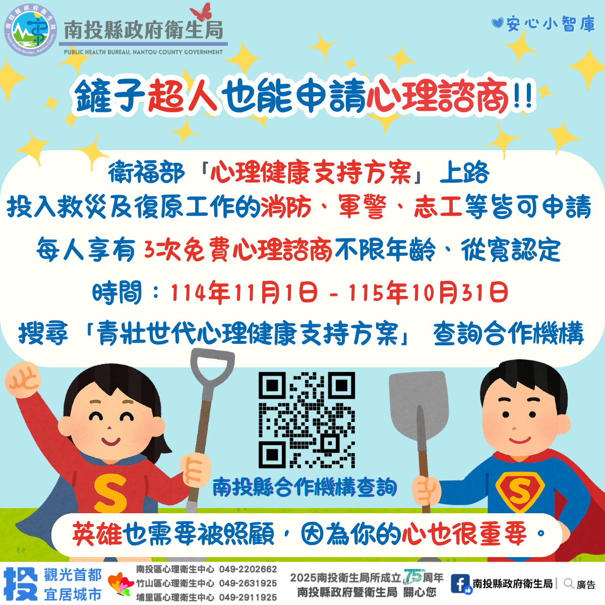 馬太鞍溪堰塞湖救災人員心理健康支持方案」之免費3次心理諮商服務宣傳單張如附件