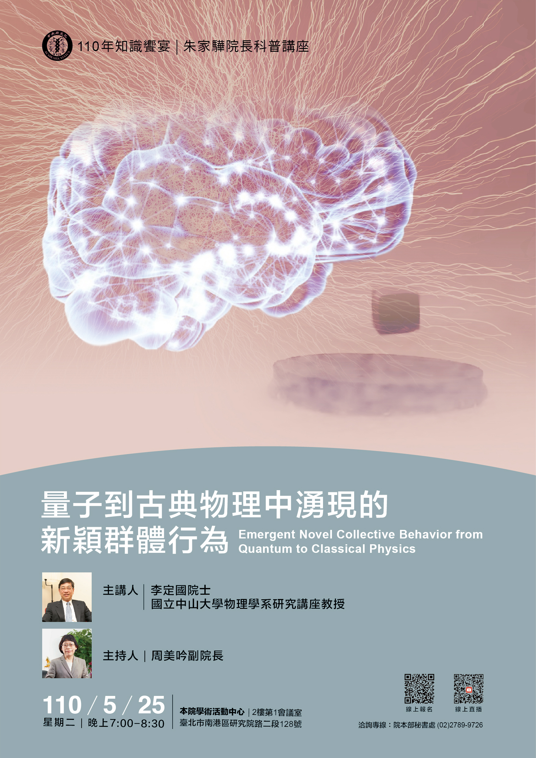 中央研究院110年「知識饗宴-朱家驊院長科普講座」訂於5月25日(星期二)晚間舉辦