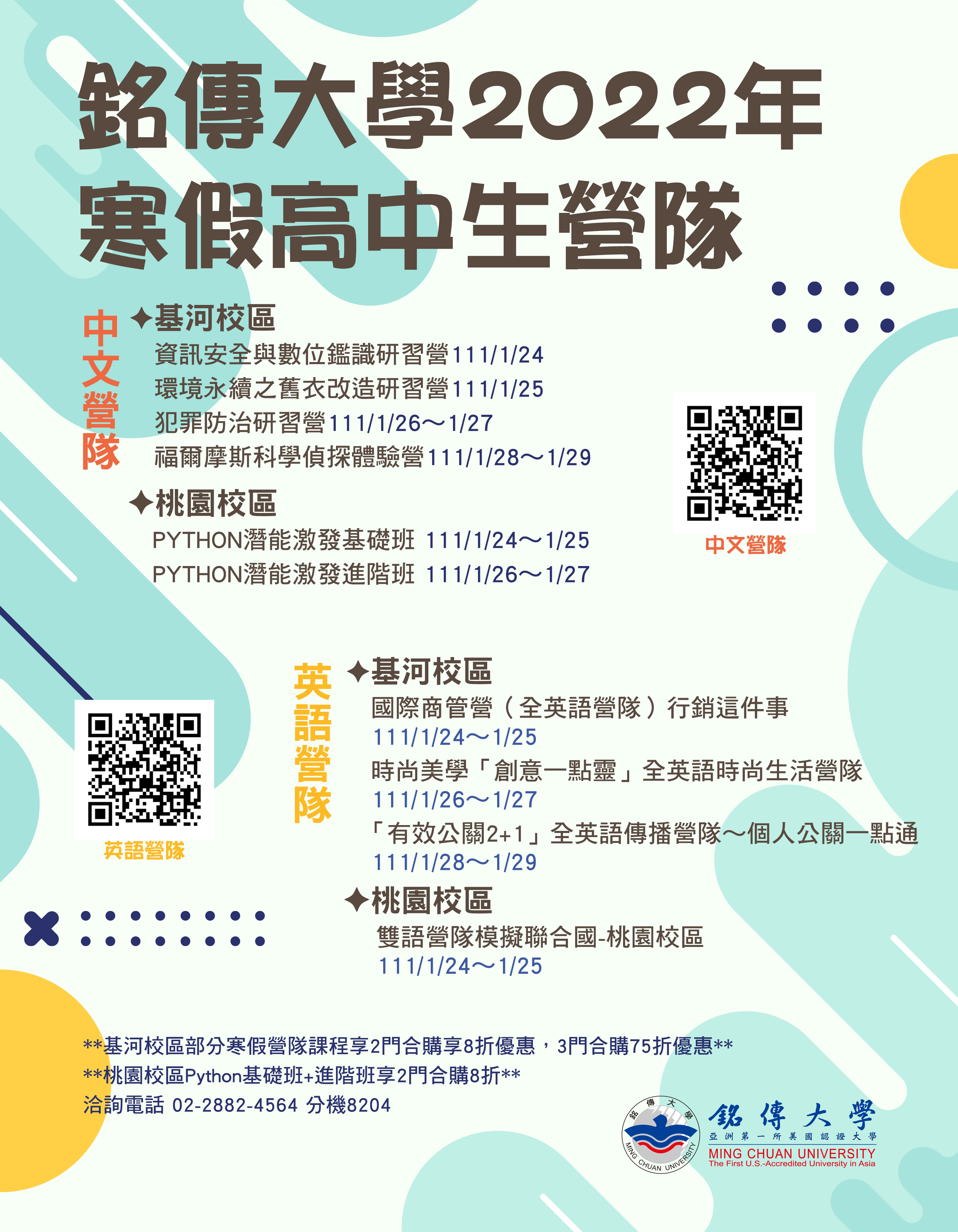 銘傳大學產學暨推廣處『2022寒假高中生營隊課程』