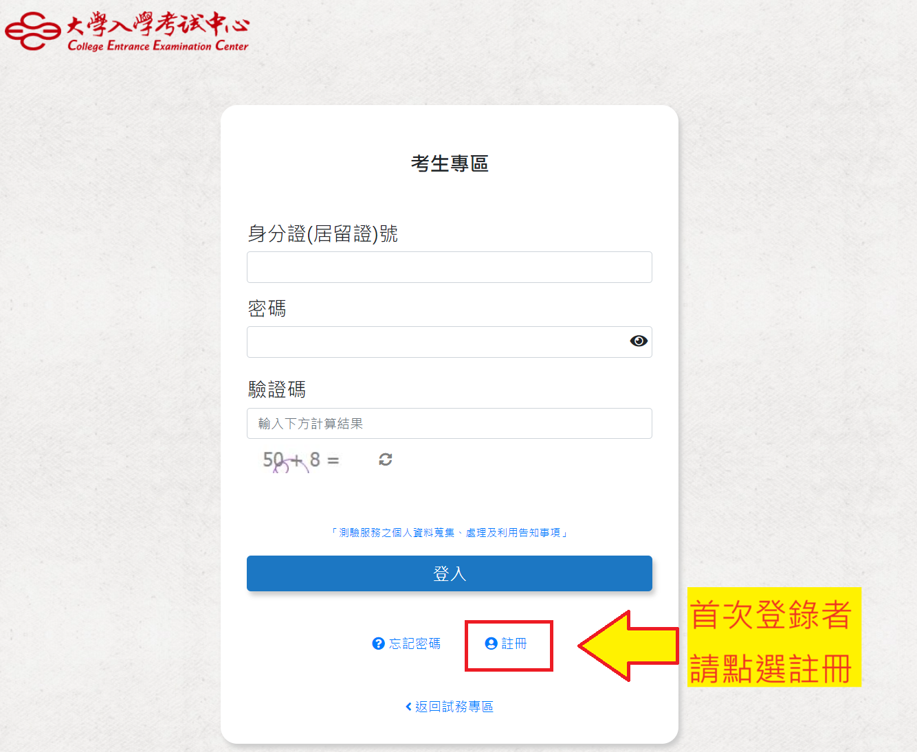 點選考生專區
