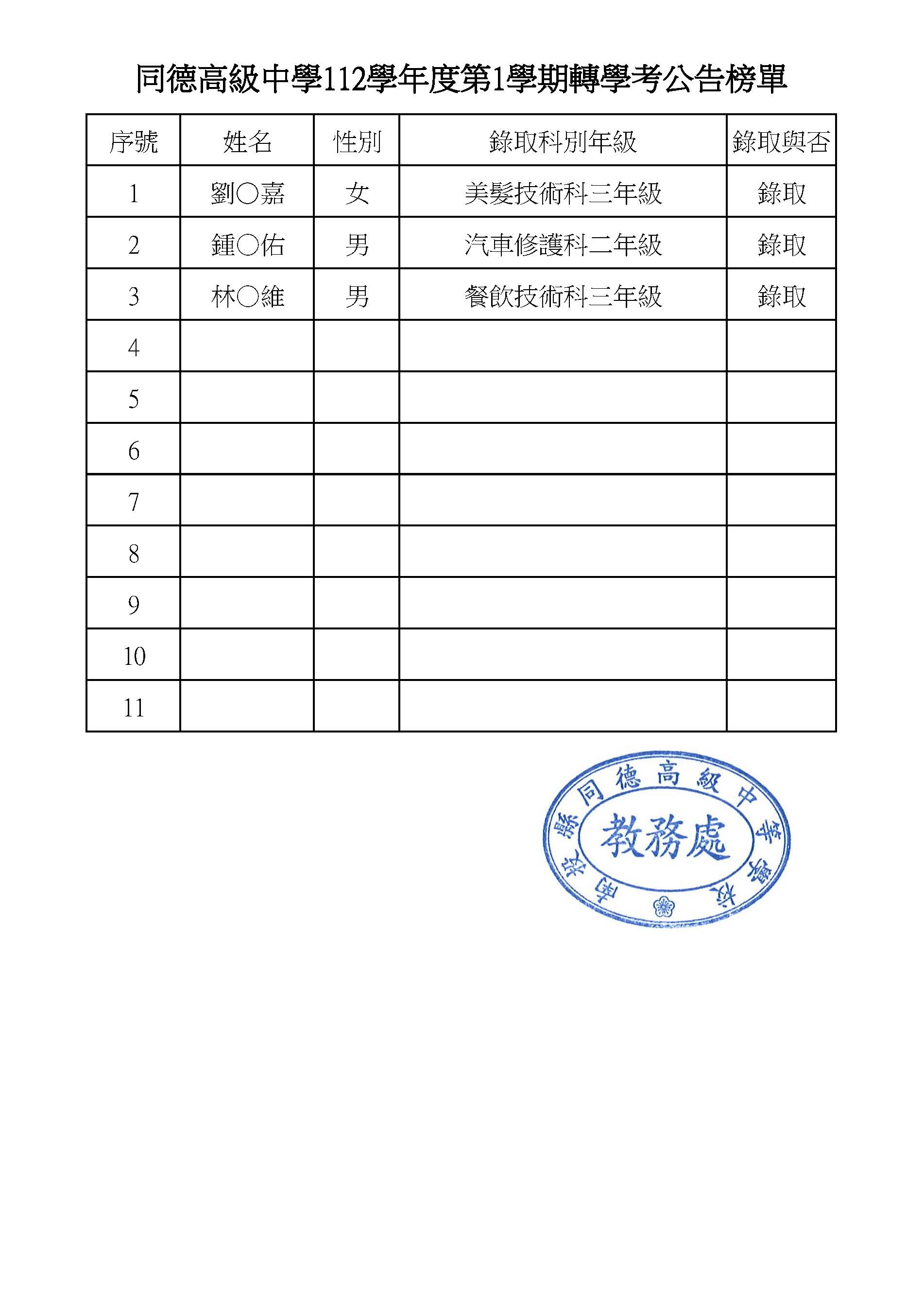 一、請錄取同學先回原學校辦理轉出,領取轉學證明書,並依以下時間至本校報到。
