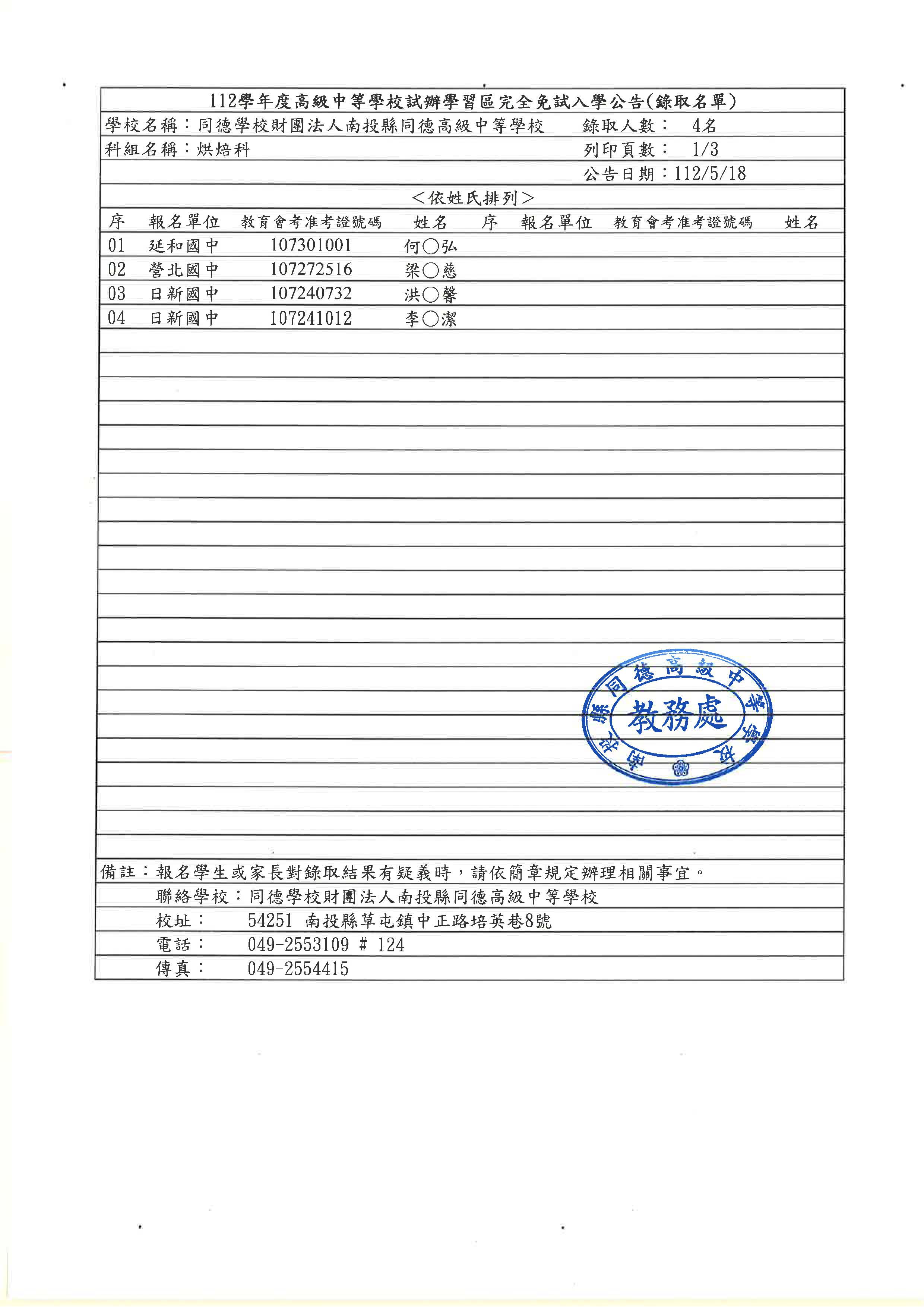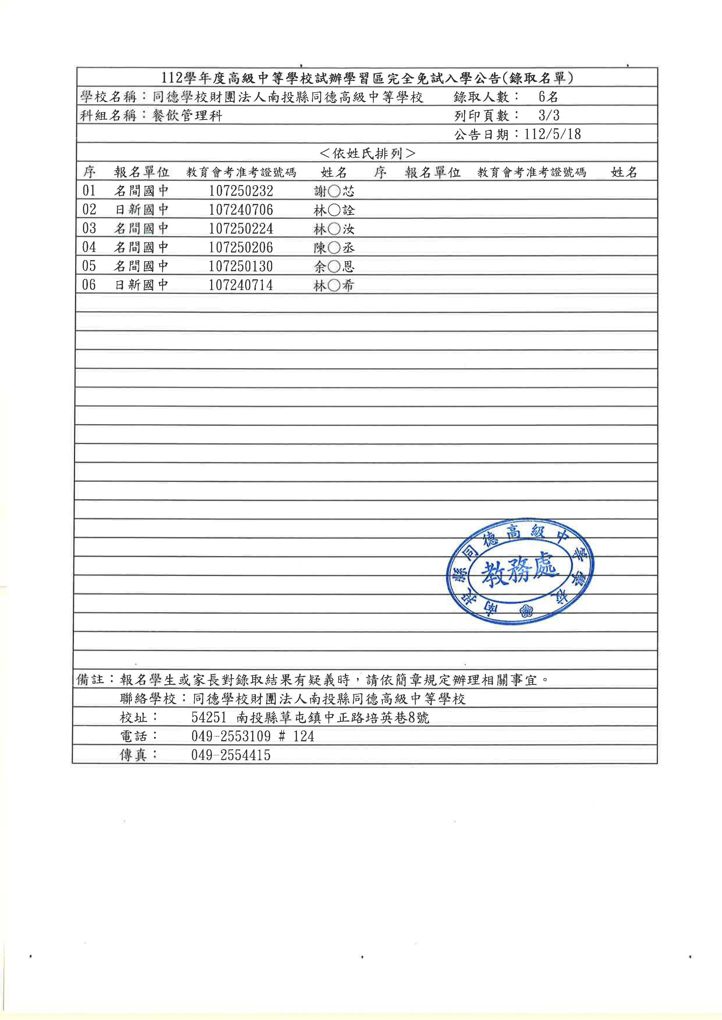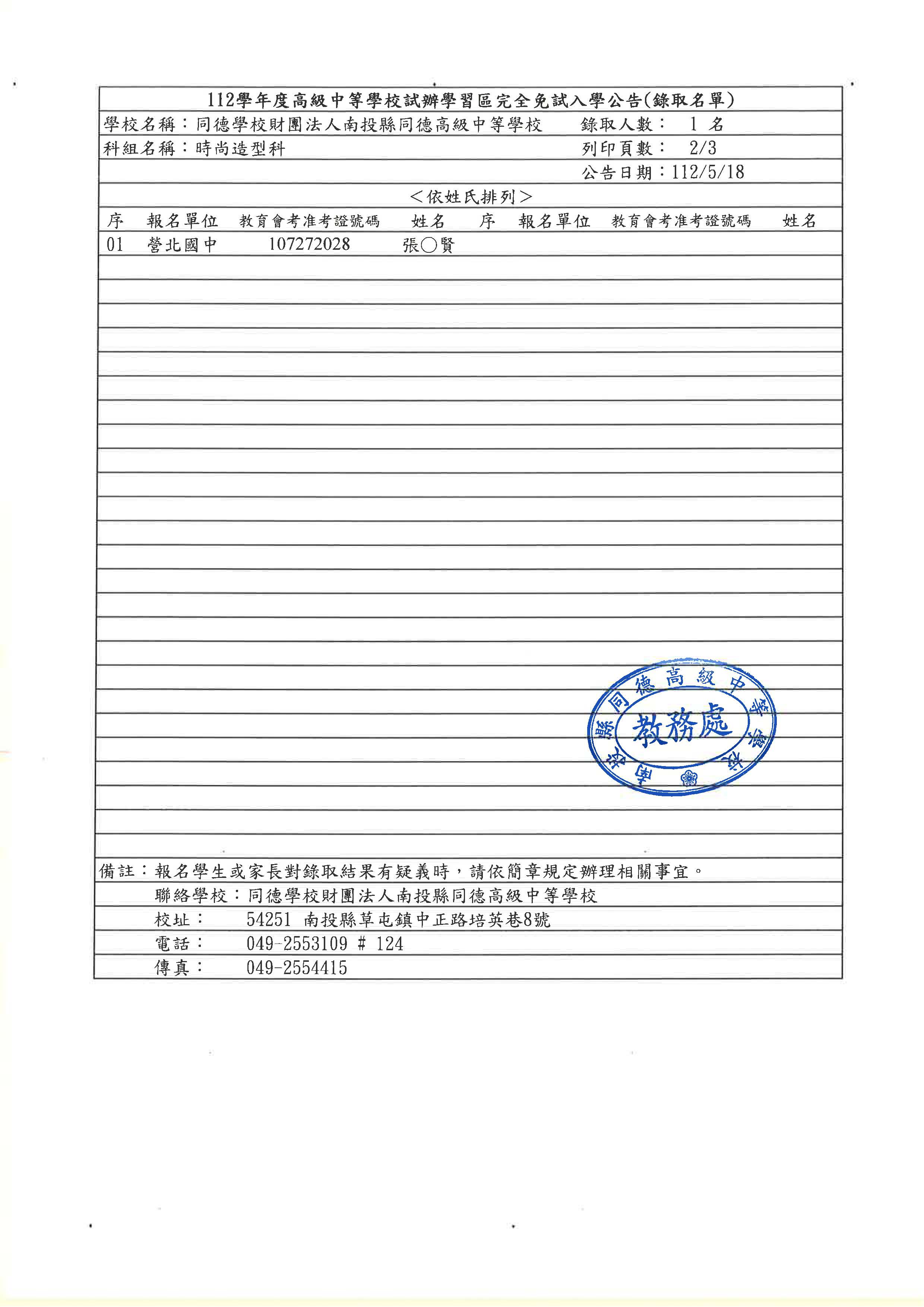 一、本案經教育部112年5月18日臺教技(一)字第1120048863號函同意備查。