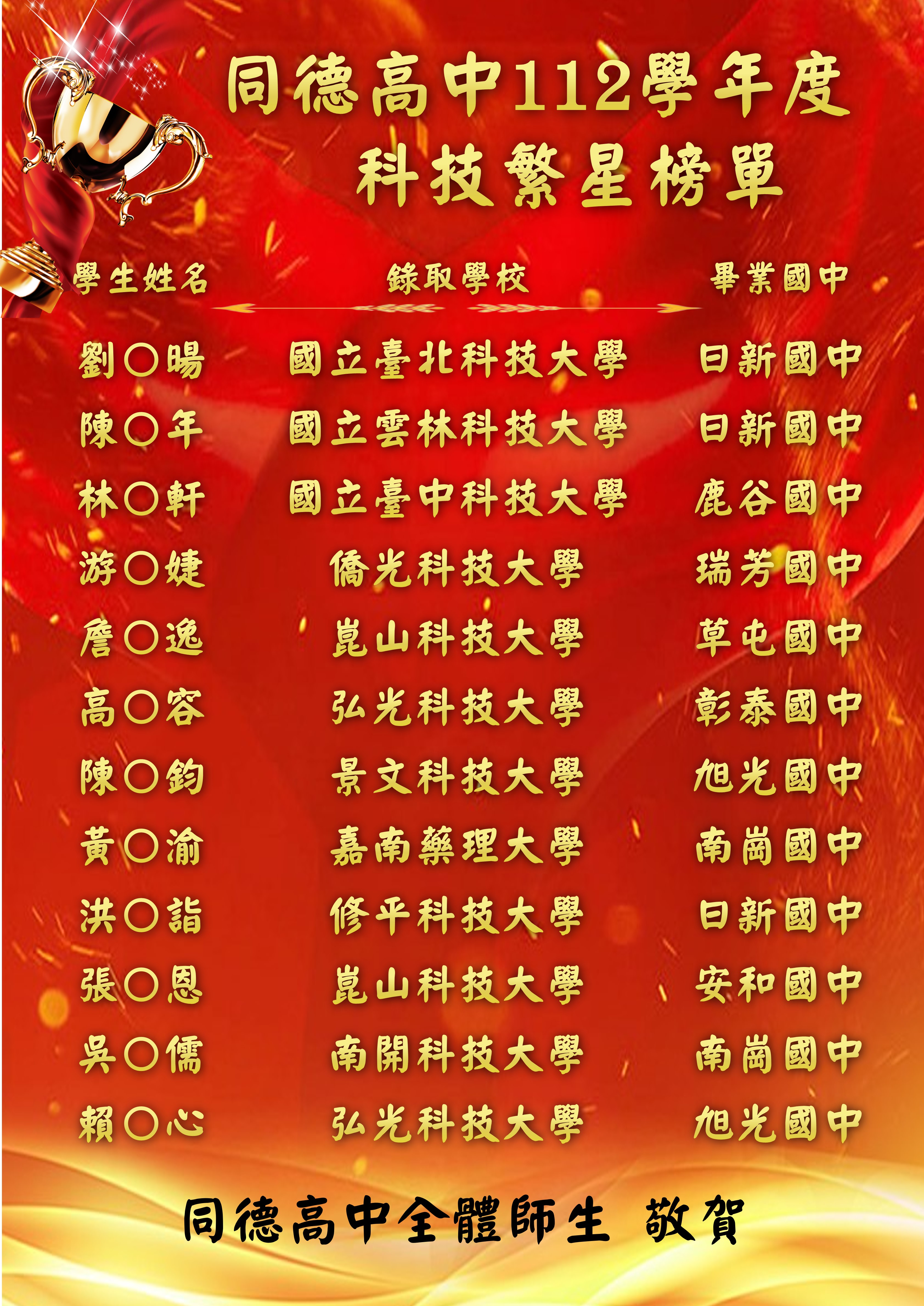年級優先錄取,其餘名額依序遞補。