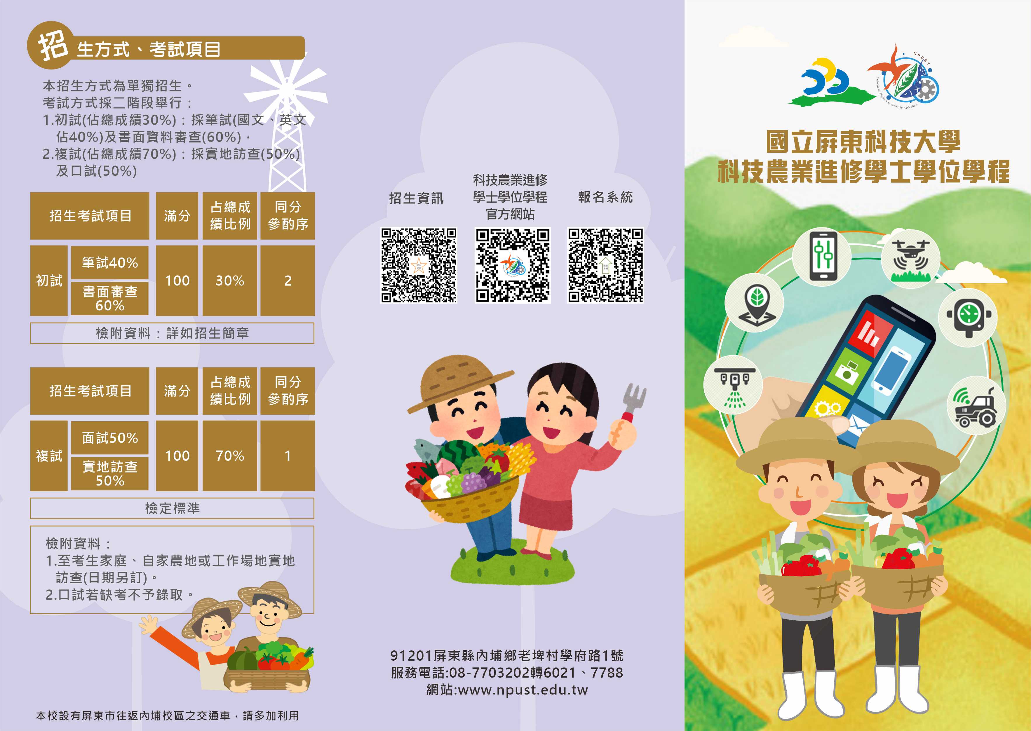 一、本校科技農業進修學士學位學程訂於111年11月23日公告112學年度招生簡章。