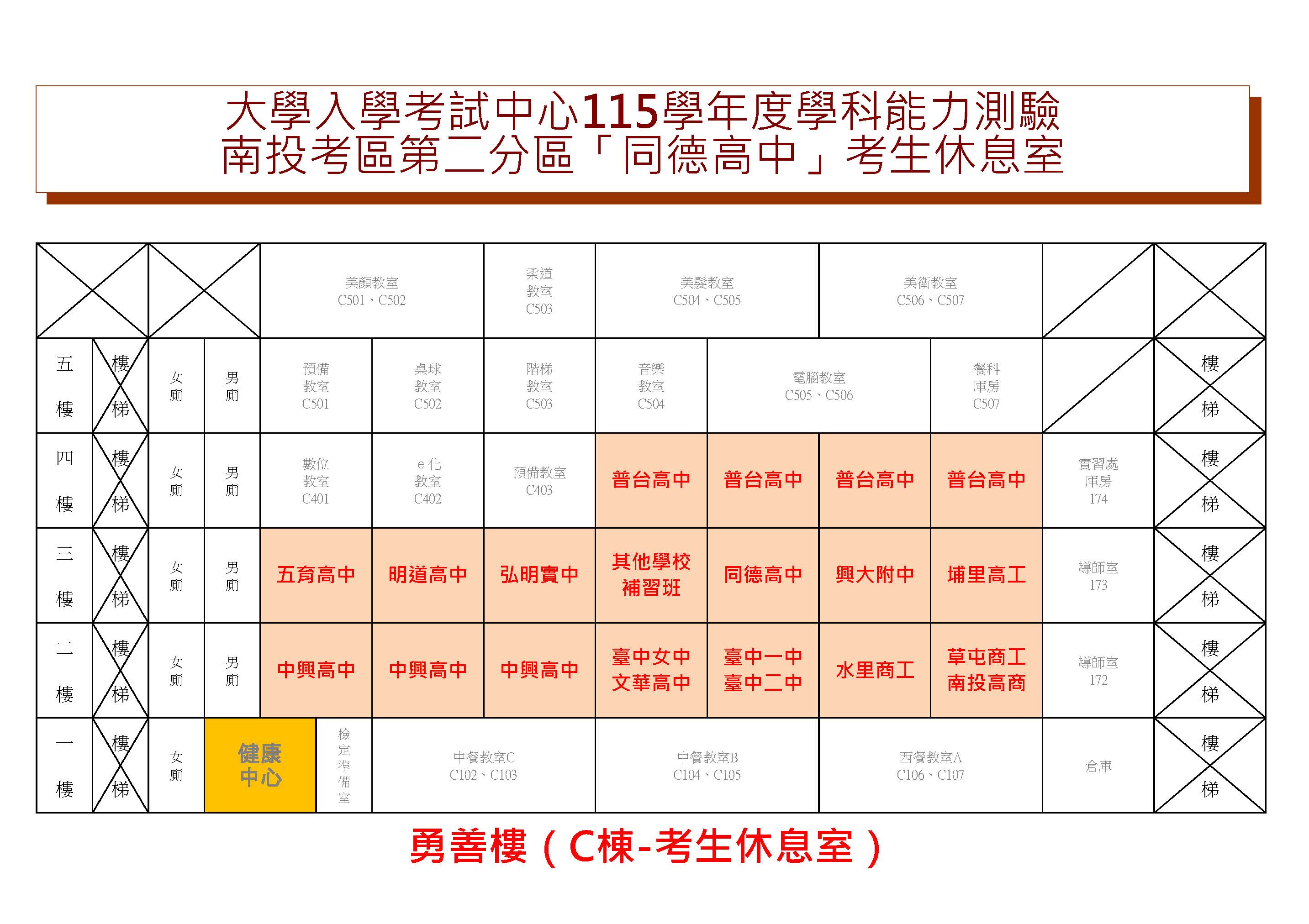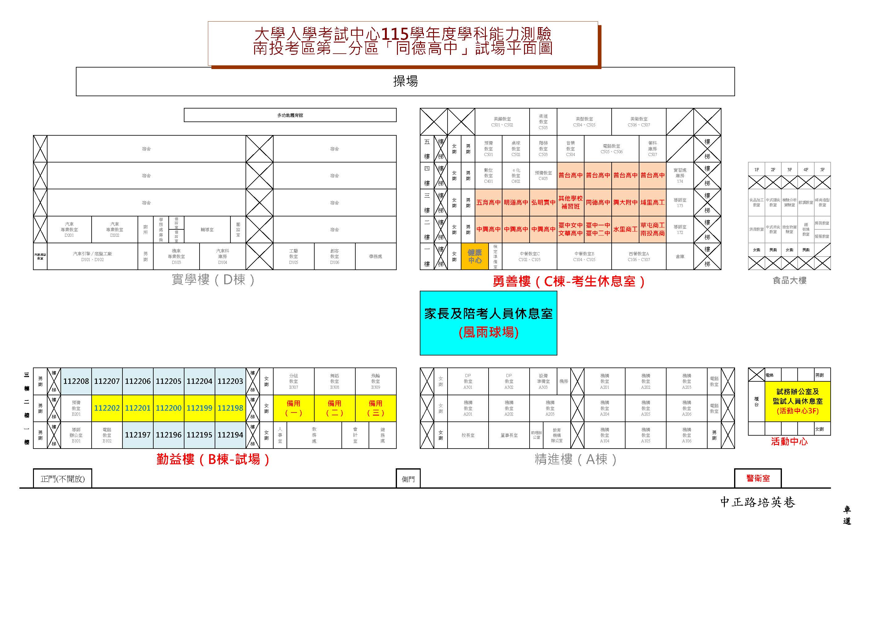 3.搭乘學校專車到南投考區第二分區車輛,請將車輛開至學校正門,考生於正門下車後,步行至側門進入考區。
