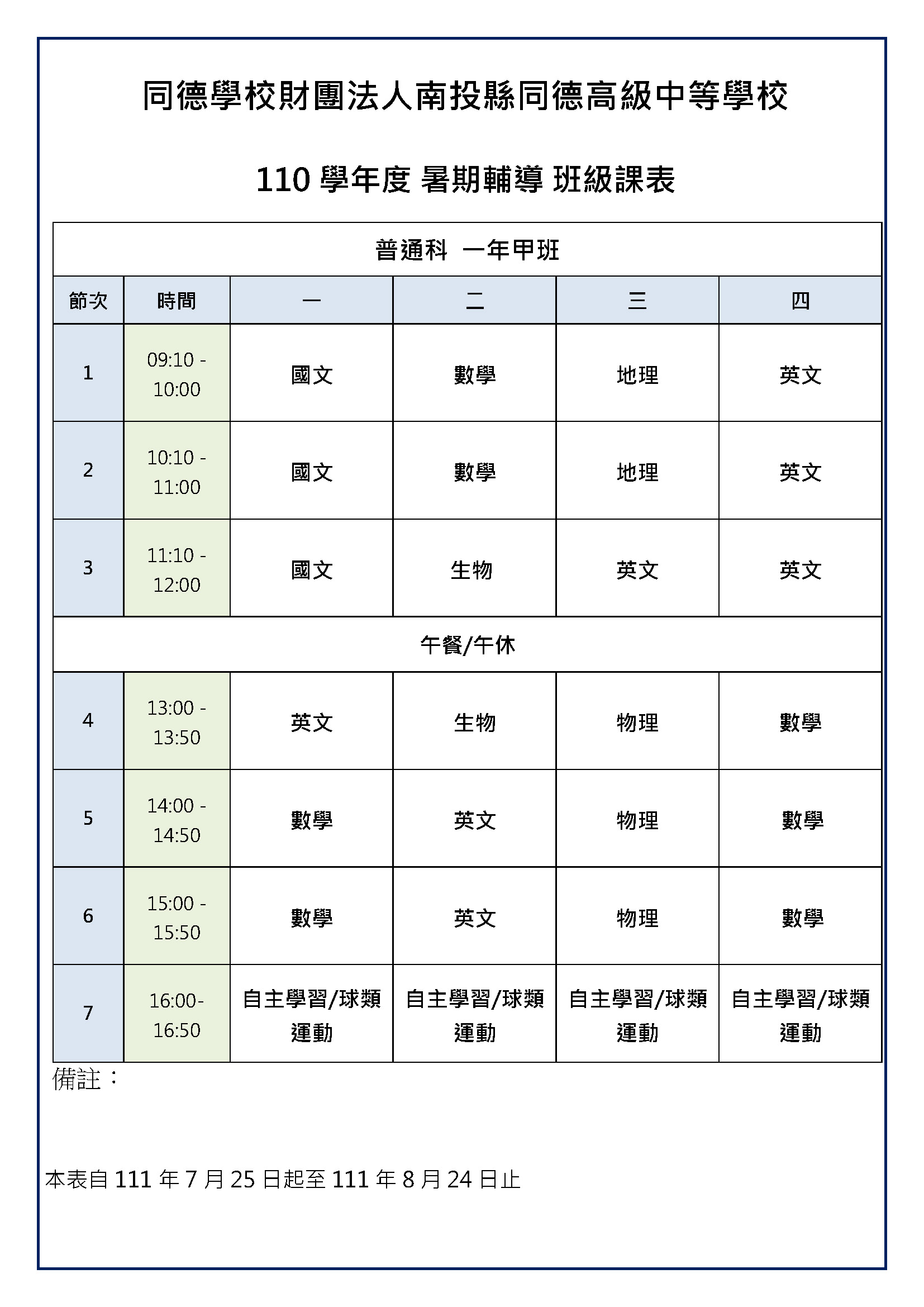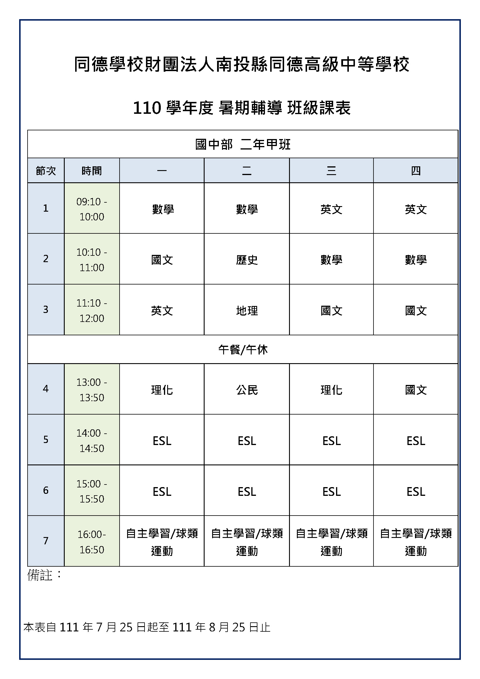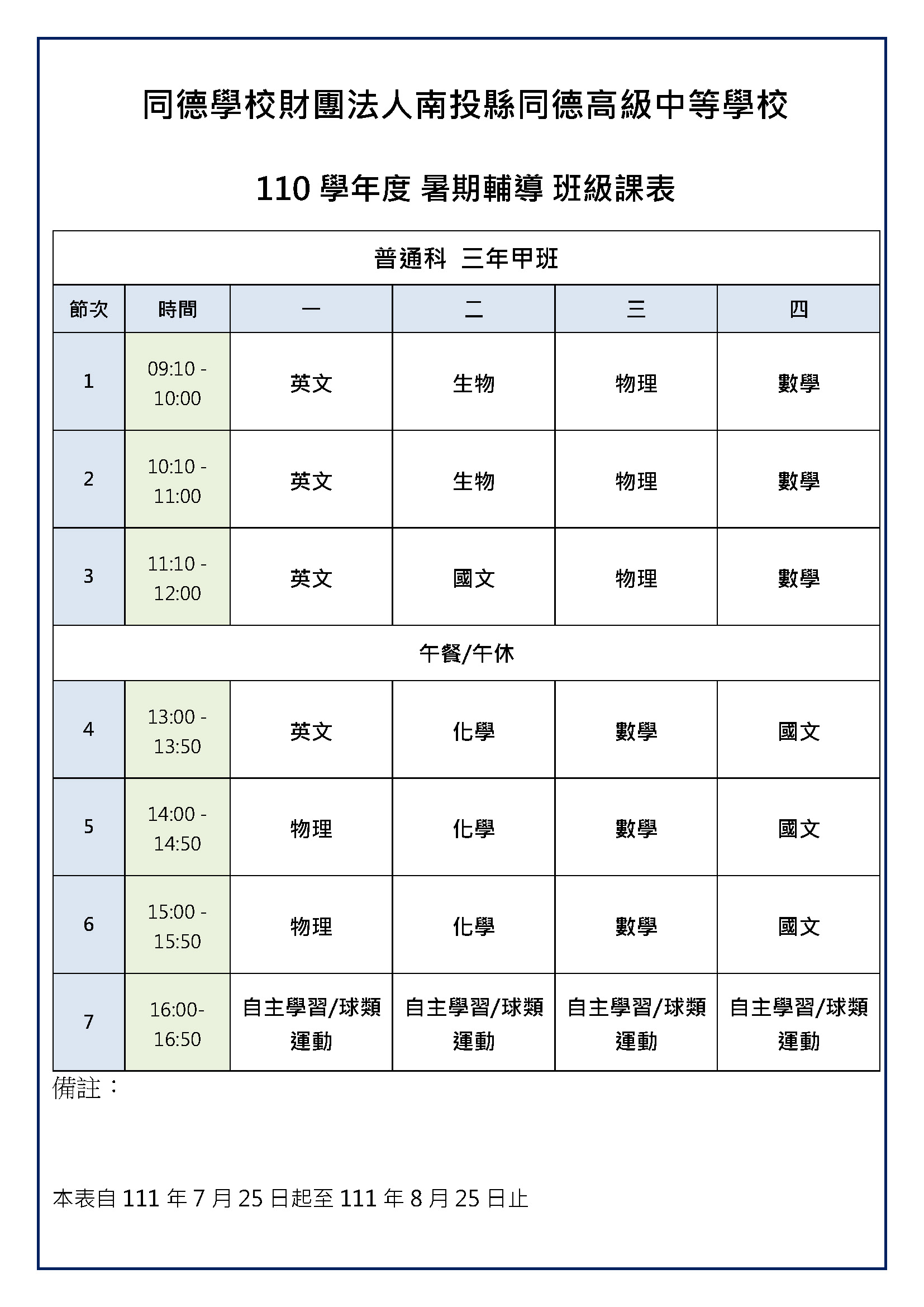 三、 報到時間:111年7月21日(四)下午四點前截止