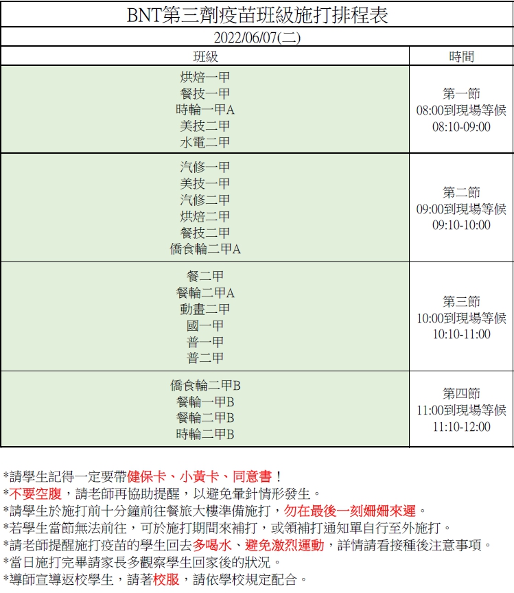 本學生在校作息時間規劃注意事項訂於111年8月1日正式施行。