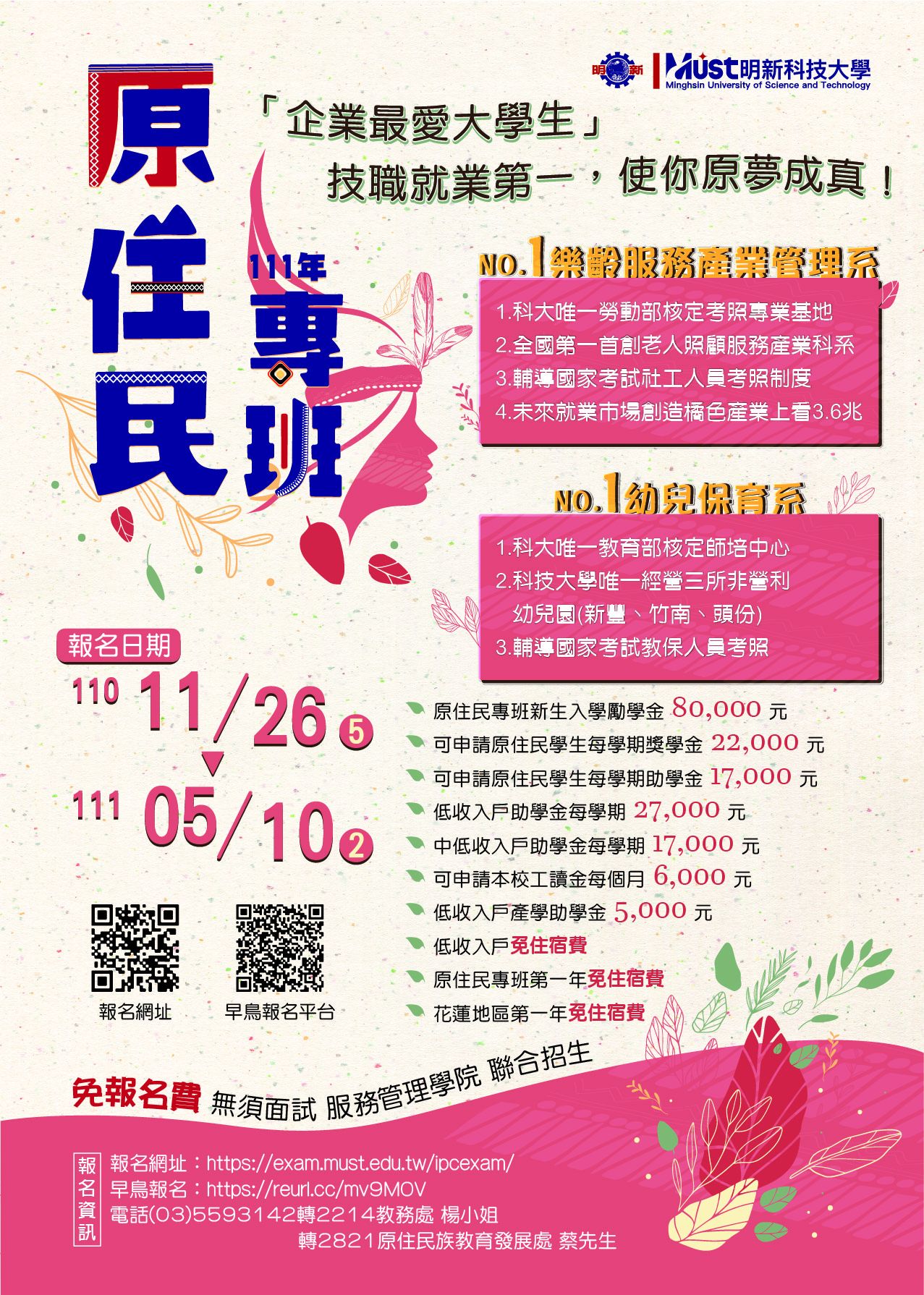 三、相關資訊均公布於明新科技大學官網招生資訊-原住民專班單獨招生網站(https://admission.must.edu.tw/admission/index.aspx?id=12)。