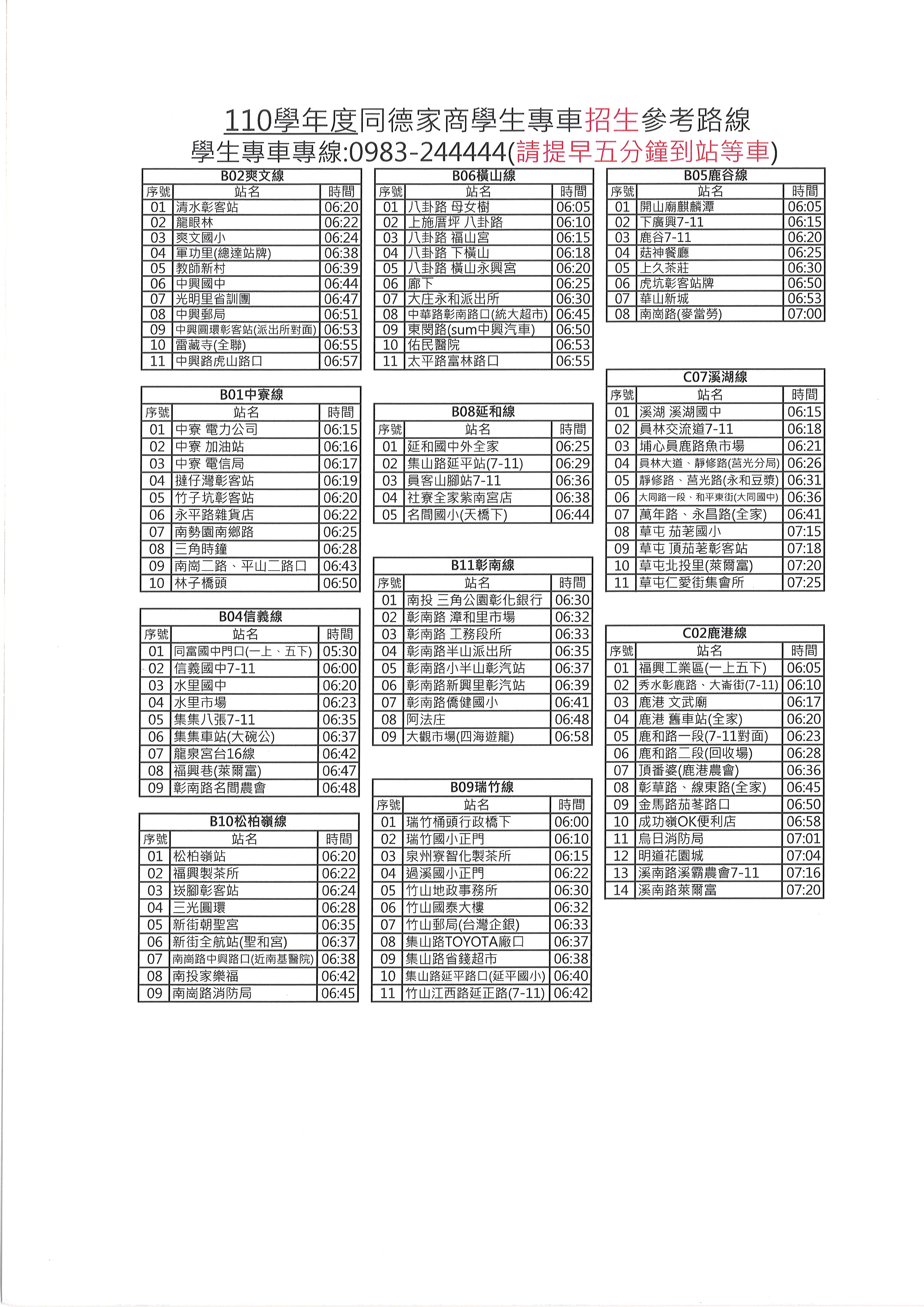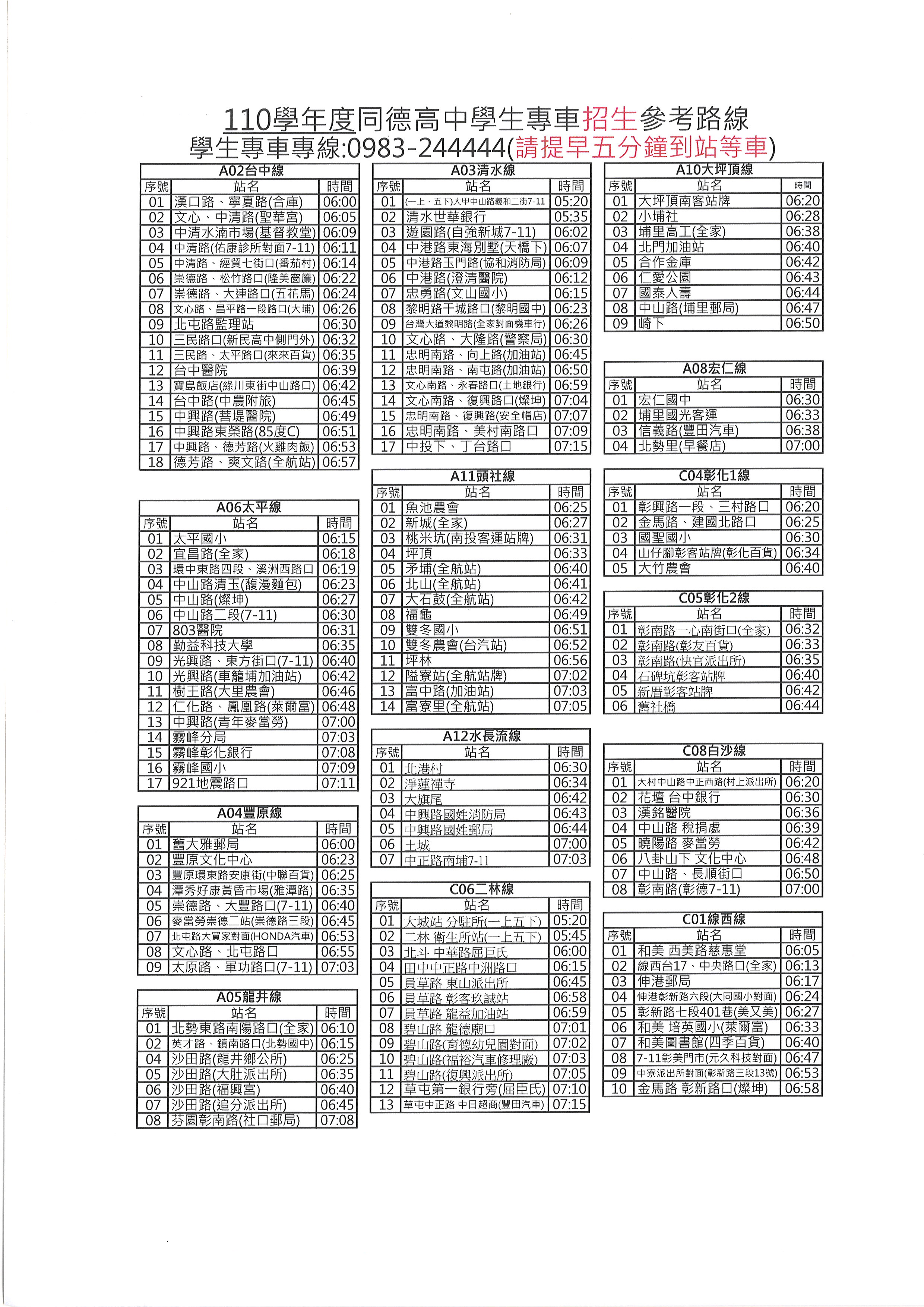 二、學生發展處聯絡電話:04-23849482;04-37065678