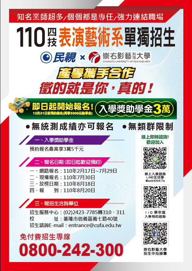 五、招生諮詢請洽本校招生服務中心,免付費服務專線:0800-242-300;LINE Q:@sxk6667s。