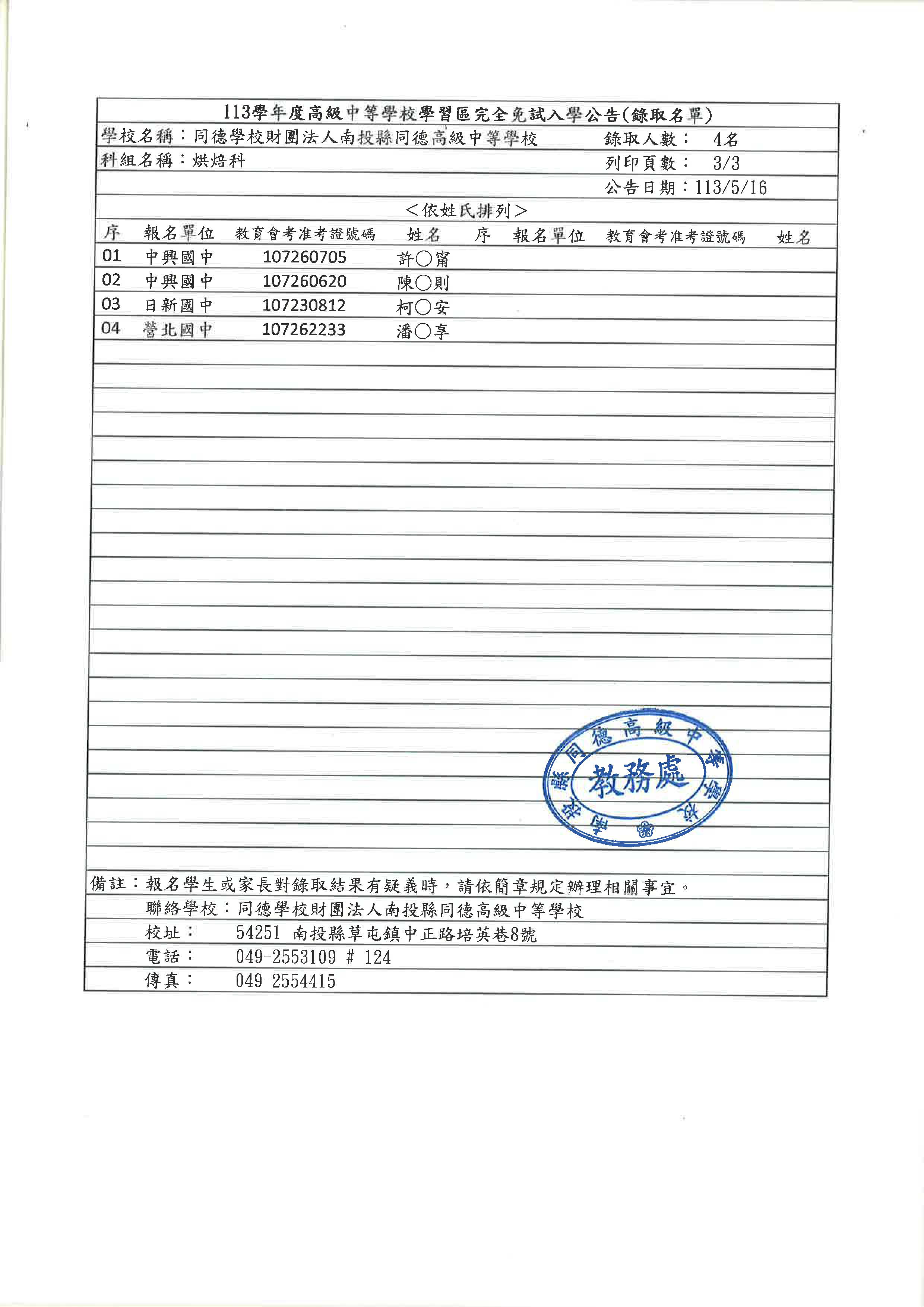 知將於6月12日依次公告通知,遞補成功學員請於通知3日